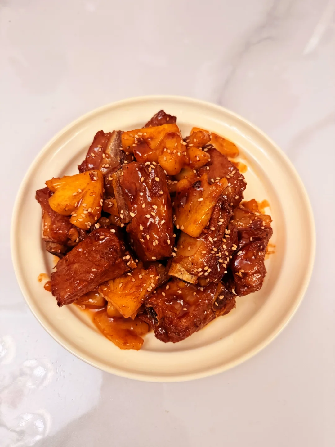 春日限定菠萝排骨,酸酸甜甜巨好吃!!