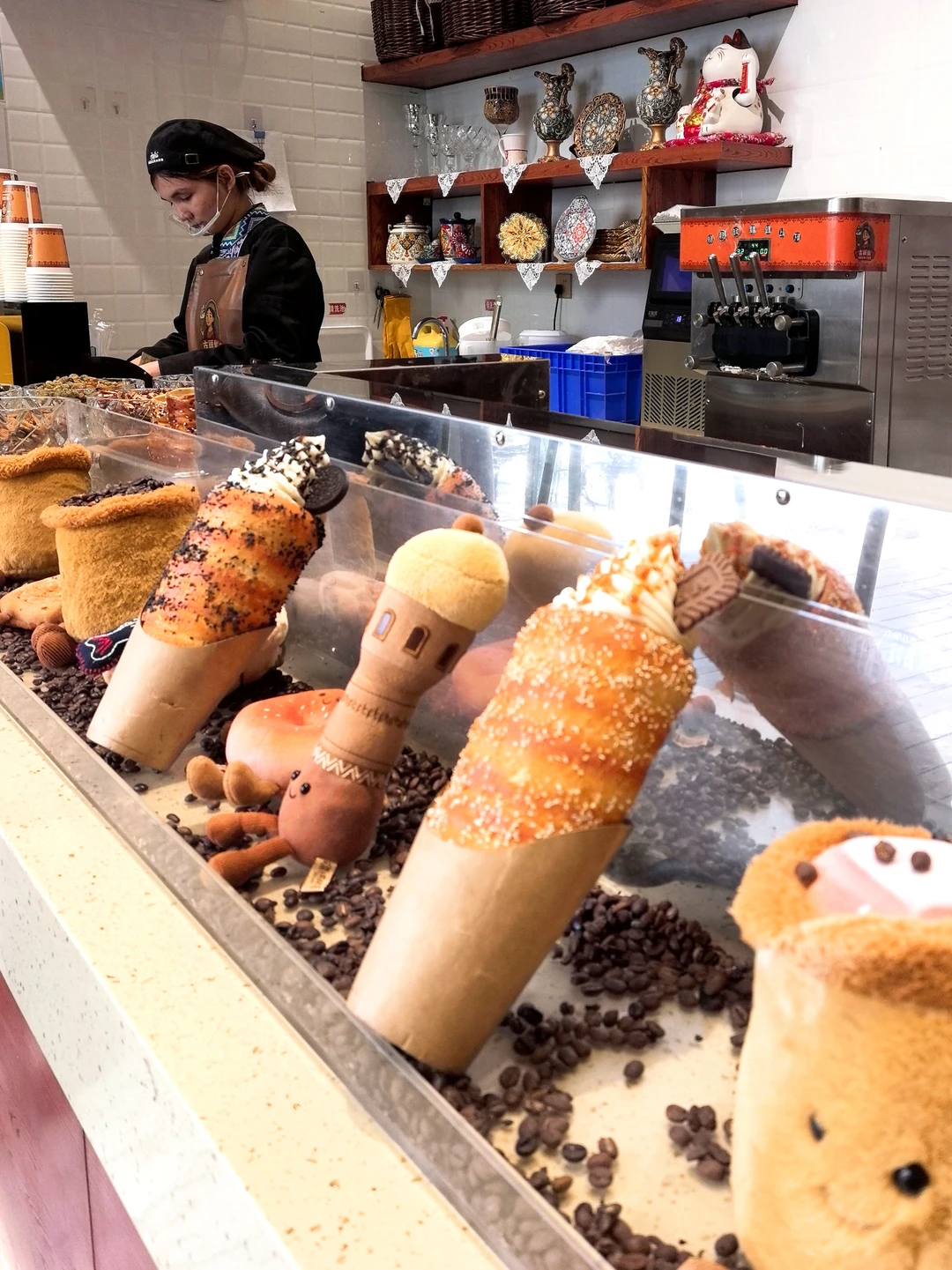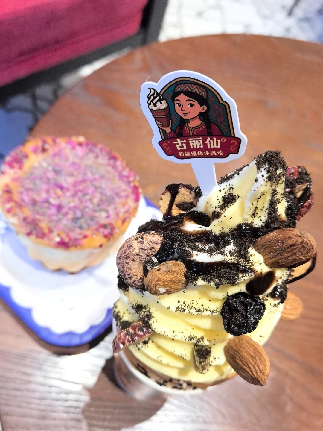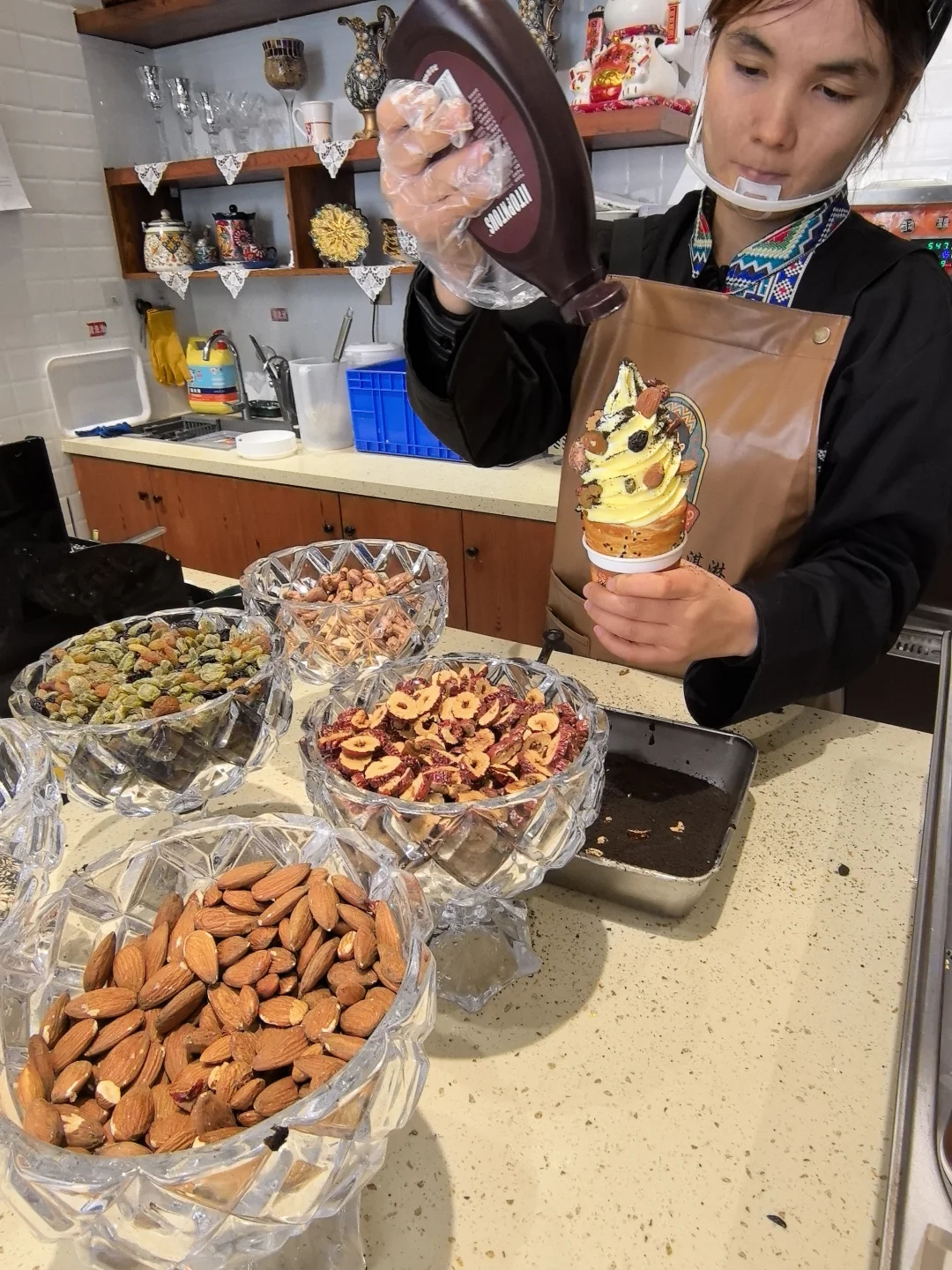 P123789/13:外脆香的馕皮卷(这个设计很好入口,不怕大口咬蹭到口红💄)+冰淇淋心+小坚果葡萄干和奥利奥粉的点缀,这是好看又好吃呀,平常不太吃冰,也吃不了太多面饼的我瞬间被这个融入到心里了(有一种薯条🍟沾冰淇淋🍦我最爱的感觉)