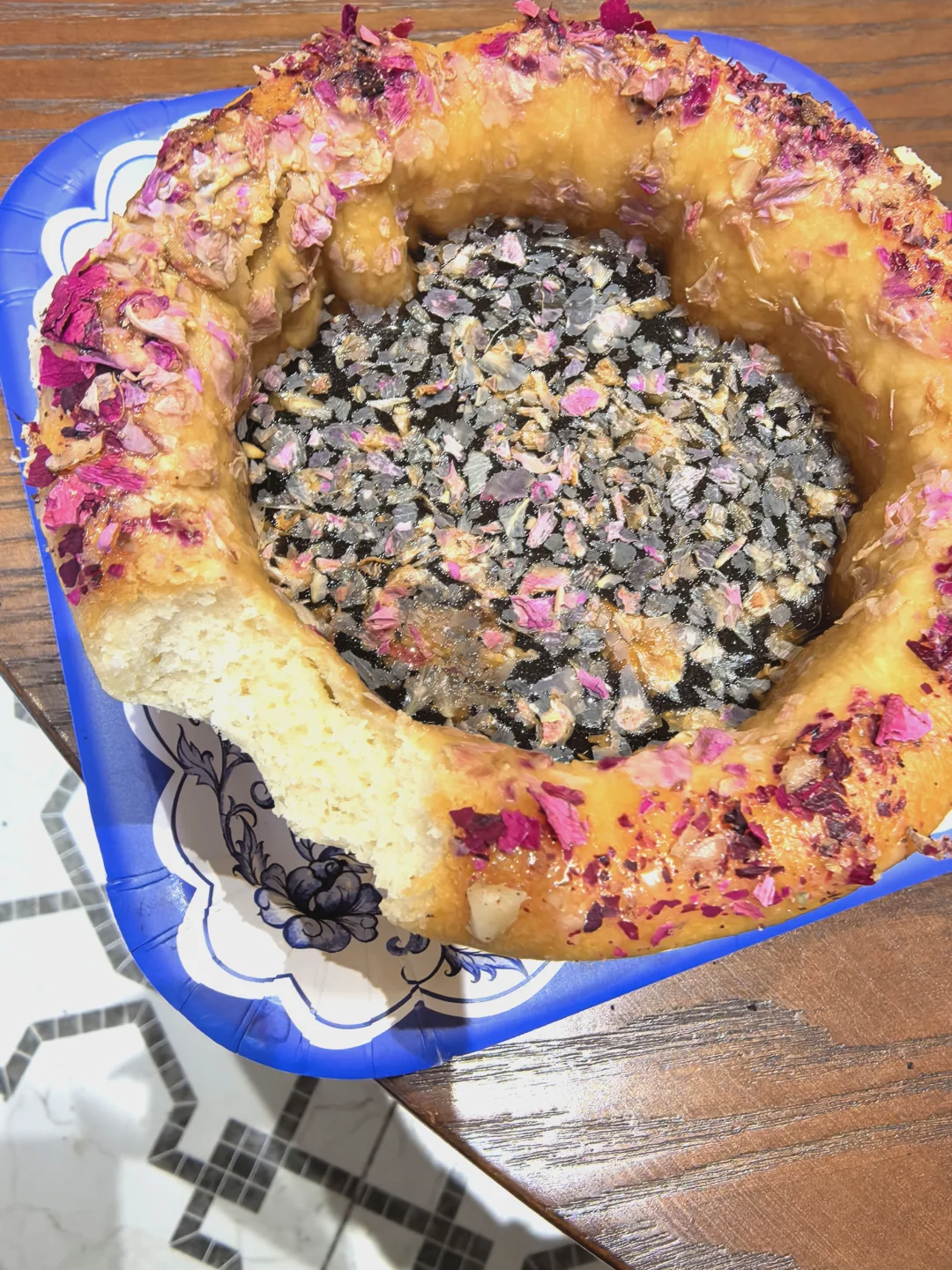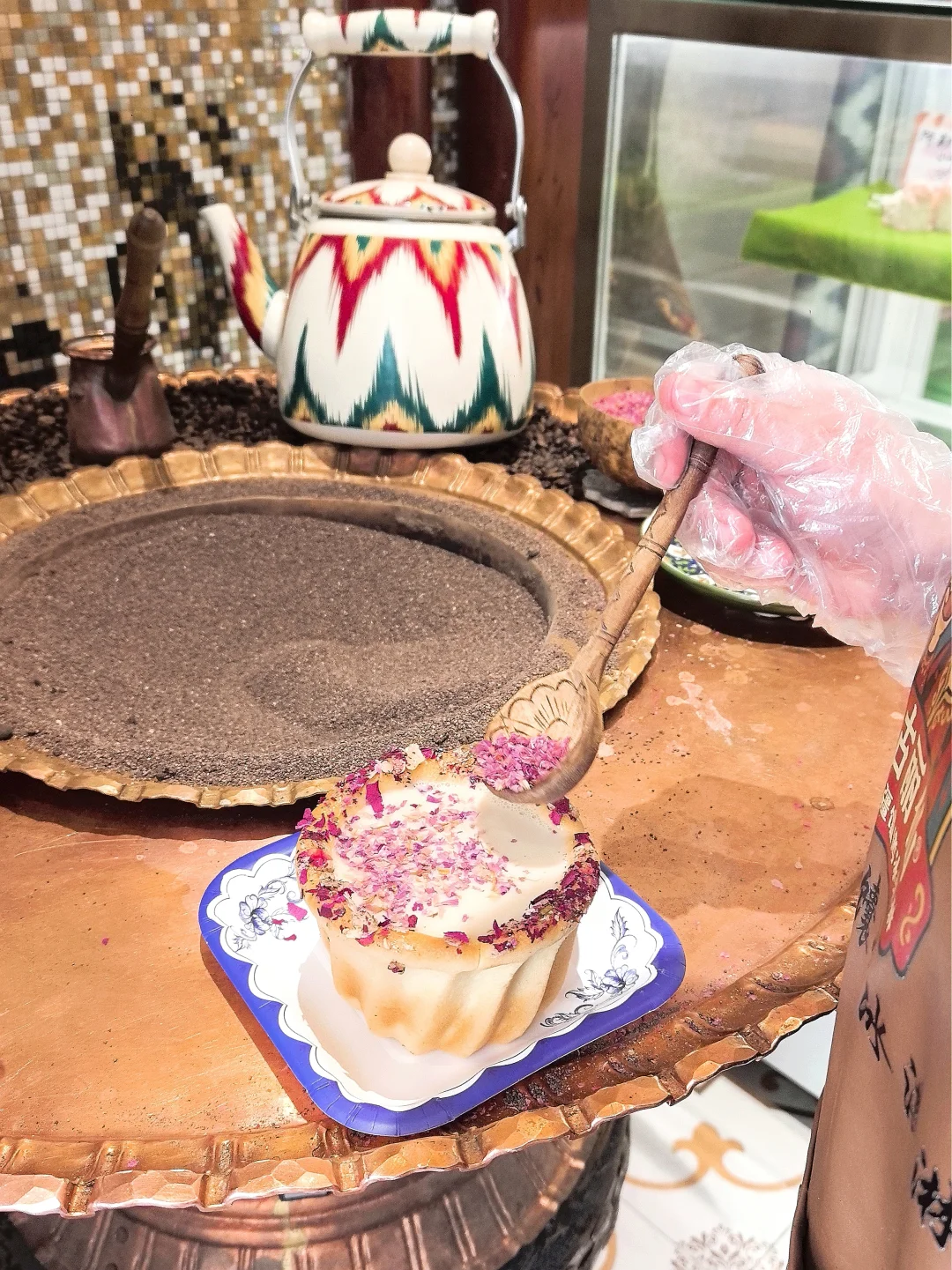 P456/10/11/12/14:沙煮馕咖啡(来新疆前就一直被种草)也是结实的皮馕加上玫瑰花瓣的点缀的美式,外刚内柔的感觉,美食也瞬间变得温柔了,且很顶饱(如果把外馕杯也吃掉的话[大笑R])