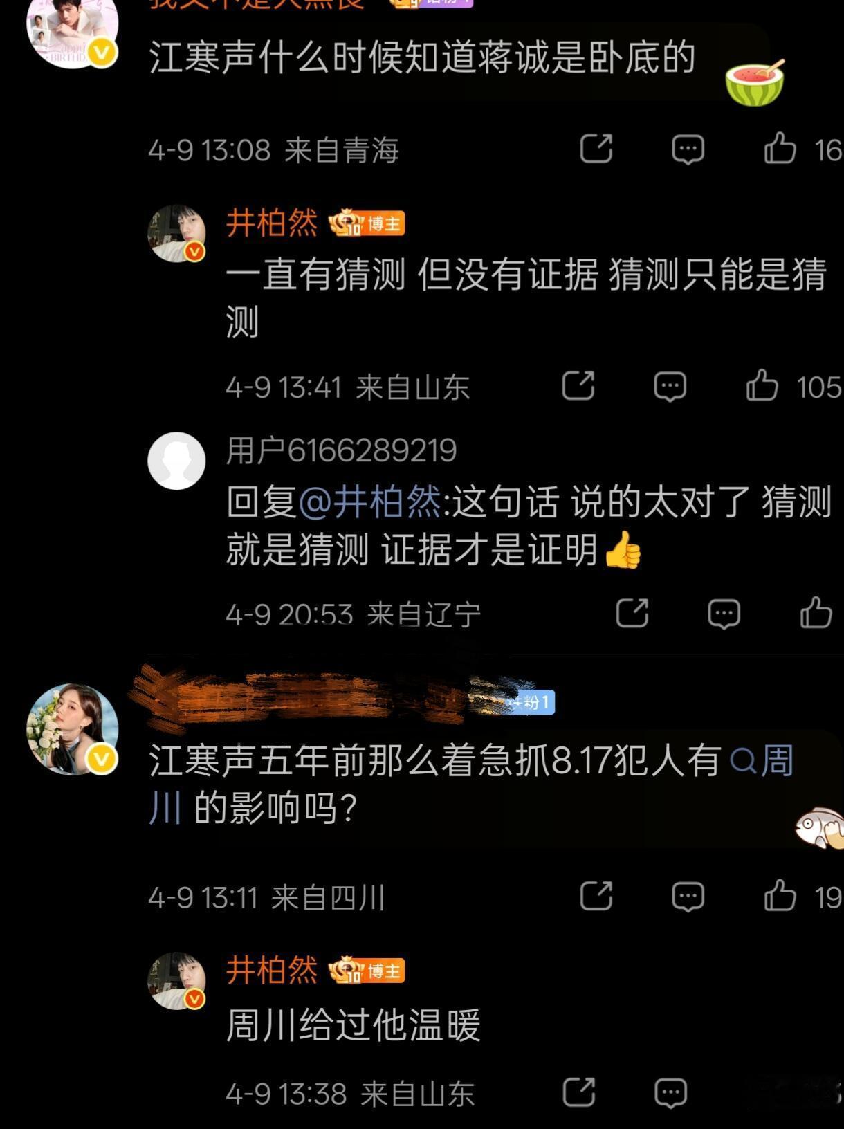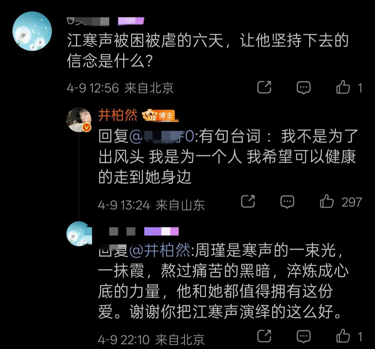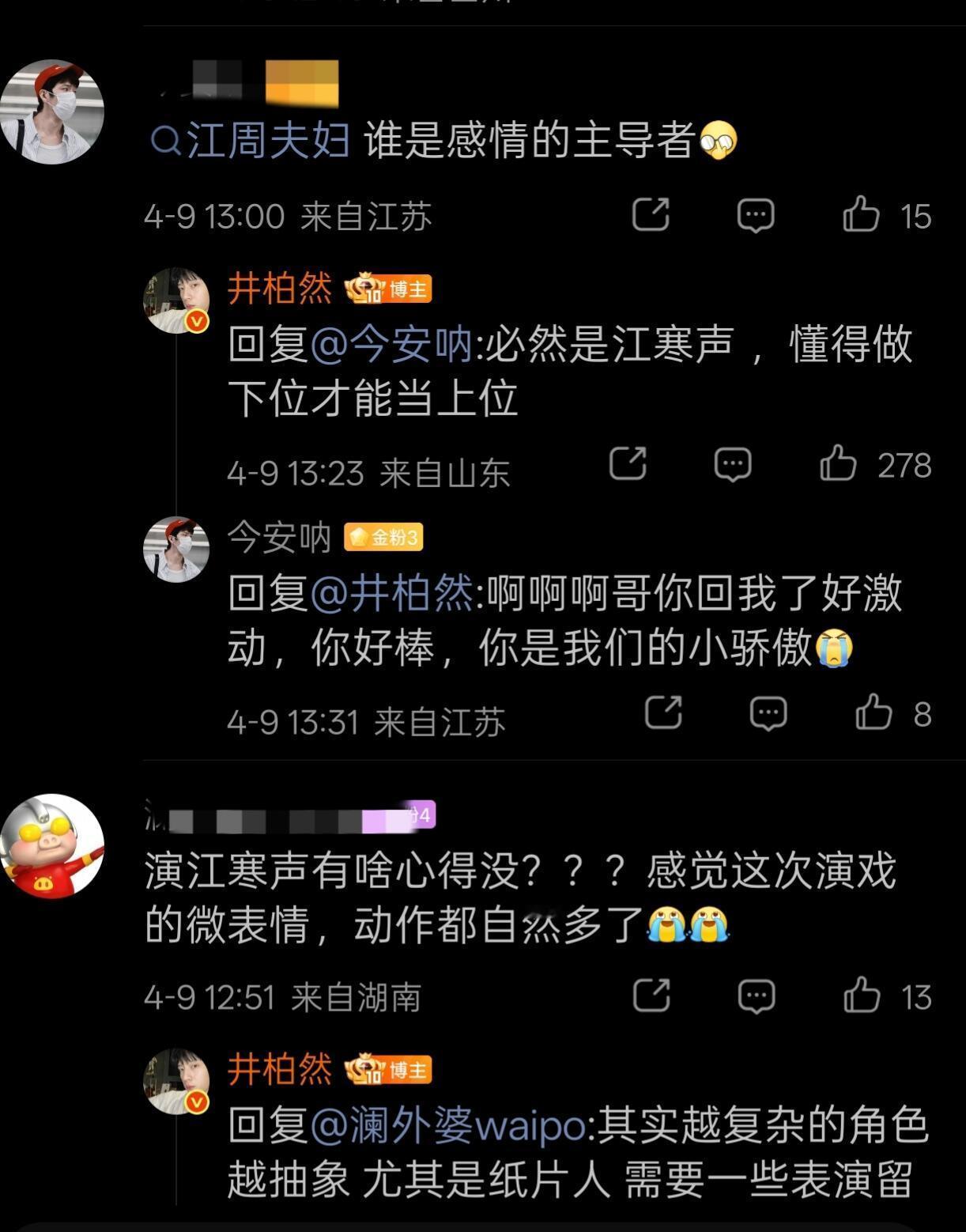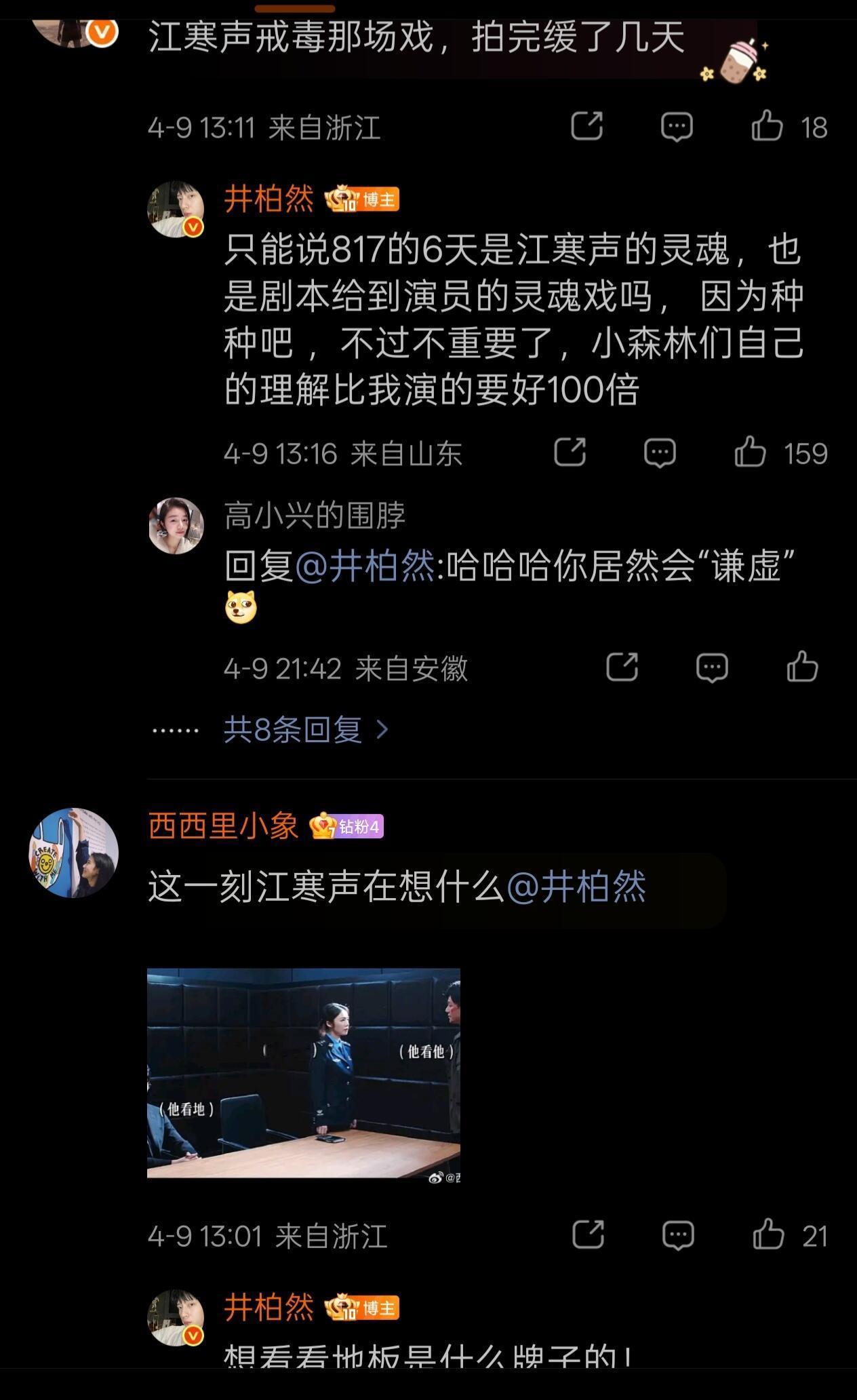 井柏然有这样用心的演员进入内娱 井柏然有这样用心的演员进入内娱简直是我的福气他真的有读懂江寒声这个人吧!一条条回复是他为江寒声这个角色作出的更深的解读,“(江寒声的BGM是)一直很安静”“懂得做下位才能当上位”“他不是一个因为孤独就需要爱情的人”天哪太透彻了井柏然!对待角色认真又用心 完全为角色辅酶吧……我们“老辈子”🔥果然是有道理的!电视剧钢铁森林