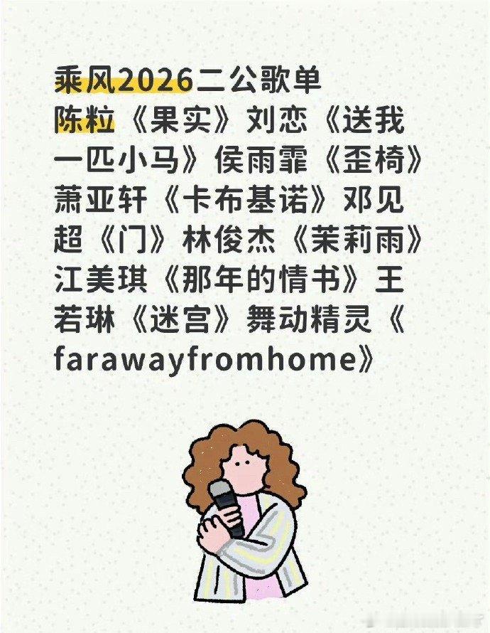 网传乘风2026二公选曲歌单二公选曲歌单来啦,多元化曲风,期待姐姐们的精彩表现乘