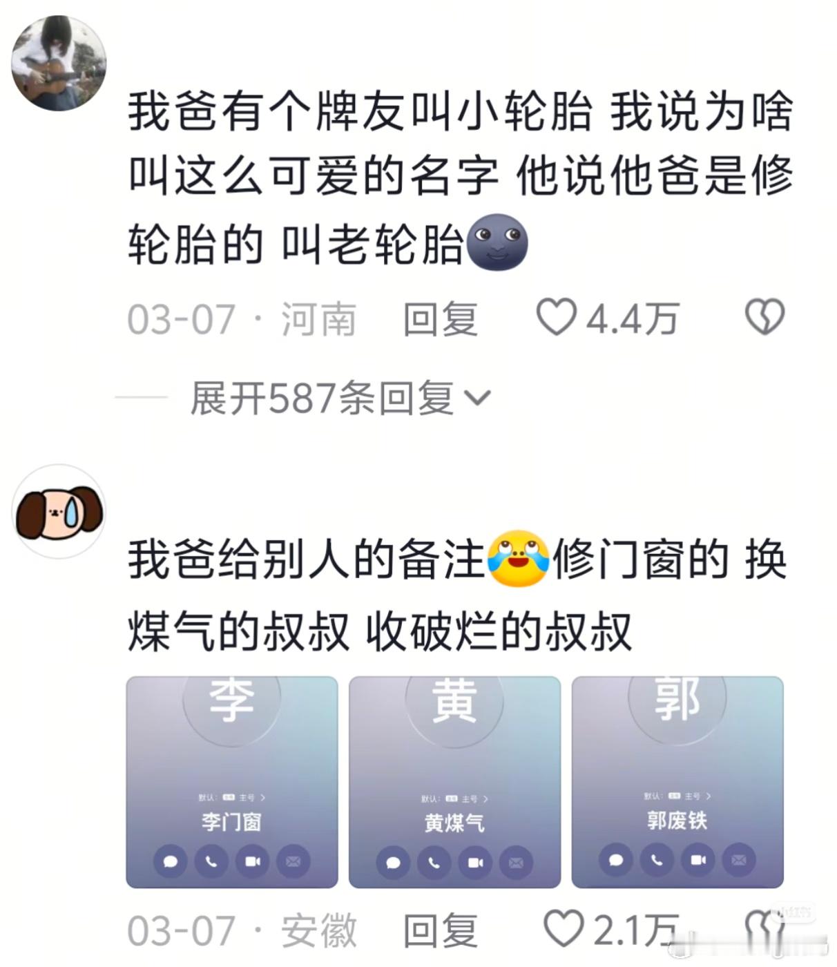 我奶的联系人备注之前家楼下有个专门回收废铁破烂家具的老头儿,我老奶给他备注 垃圾佬 ,虽然不是很礼貌,但仔细想想,没有毛病啊
