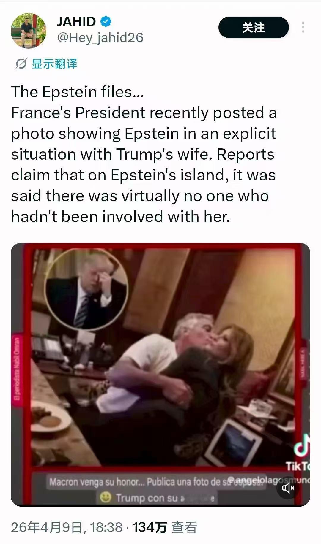 在梅拉尼娅否认和爱泼斯坦很熟后,美国有人上传了一张图,咱也不知道是不是真的。反正猜测的人很多。必须靠打伊朗来掩盖这些声音。