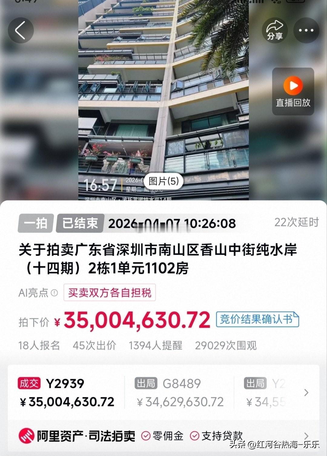 无独有偶。就在前两天,华侨城纯水岸十四期一套建面约301平的豪宅,经过18位买家、45次竞价,最终以3500万成交,溢价率高达132.5%。