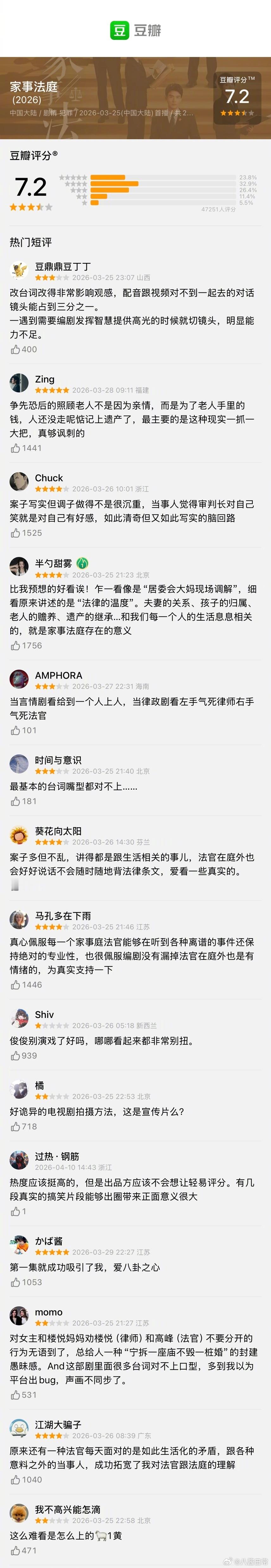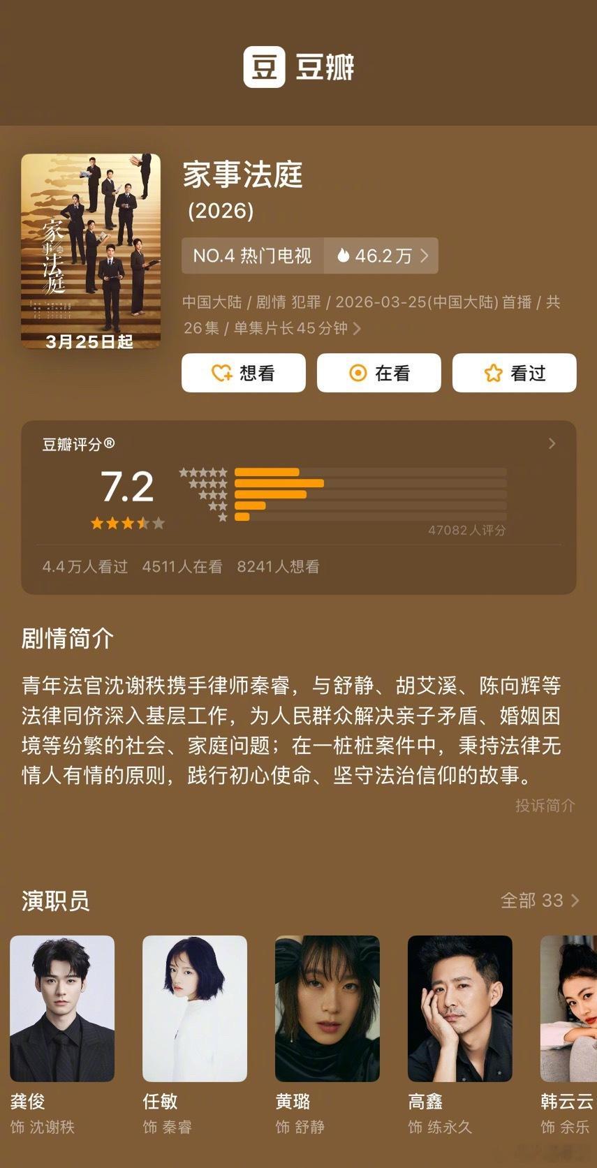 龚俊、任敏《家事法庭》豆瓣开分7.2分