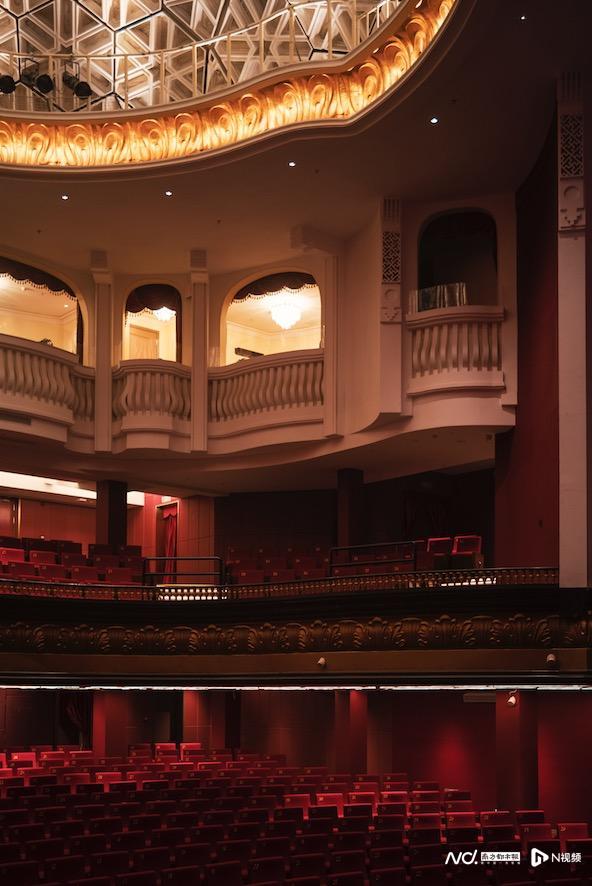 伫立戏院中央,穹顶之下,玻璃滤过的柔光漫洒,晕染着满堂红椅,与古法复刻的二龙戏珠图案相映成趣。据修复团队介绍,海珠大戏院完成了一场“回归本真”的改造,完整保留了穹顶原有的木质结构与天然声学原理——无需现代音响加持,演员唱腔便能自然传遍三层大厅,同时为镜框式舞台配齐专业技术支撑。