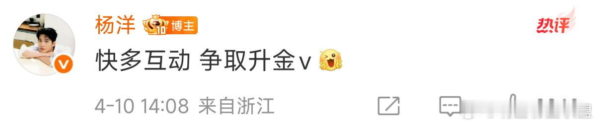 杨洋为了升金V发博 好好好,原来杨洋是第三次掉v了,前两次还是22年,《雨霖铃》官博还在评论区和玩上了展昭“御猫”梗互动了,能不能速速抬上来此剧,我真的想看展昭!