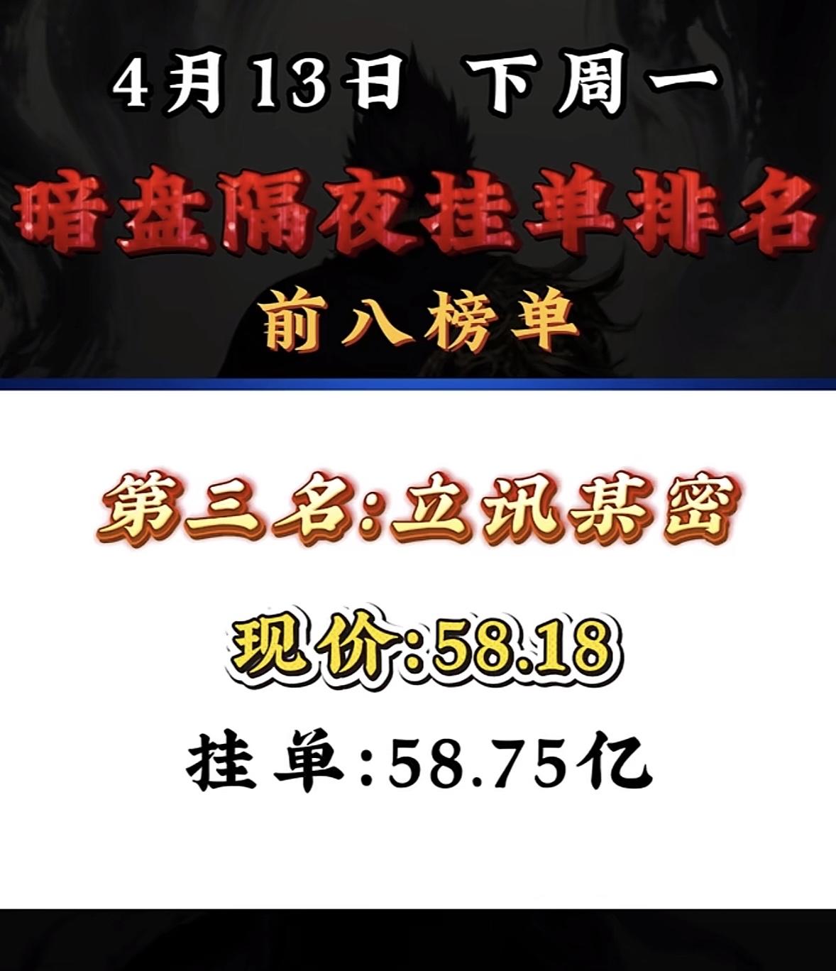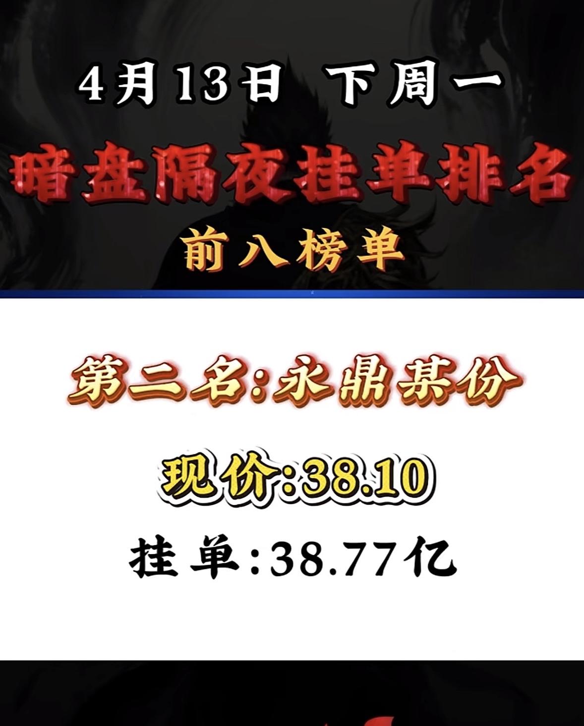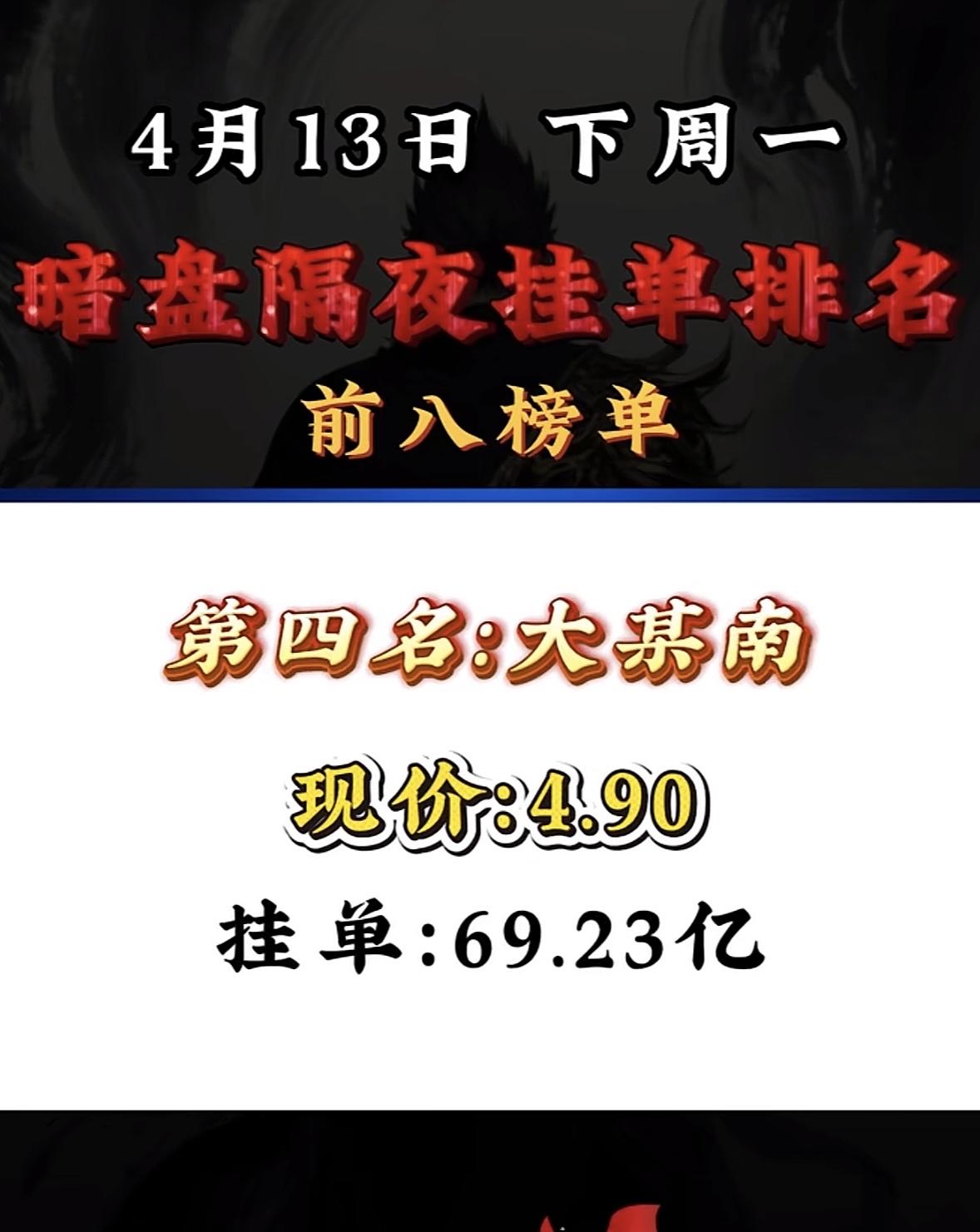 4月13日周一暗盘隔夜挂单排行榜资金整理结果公布啦。 暗盘隔夜挂单排名揭晓,彩