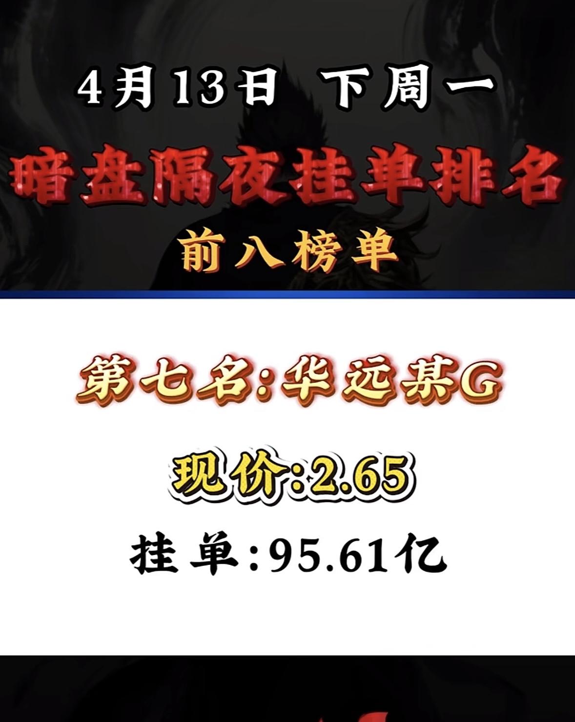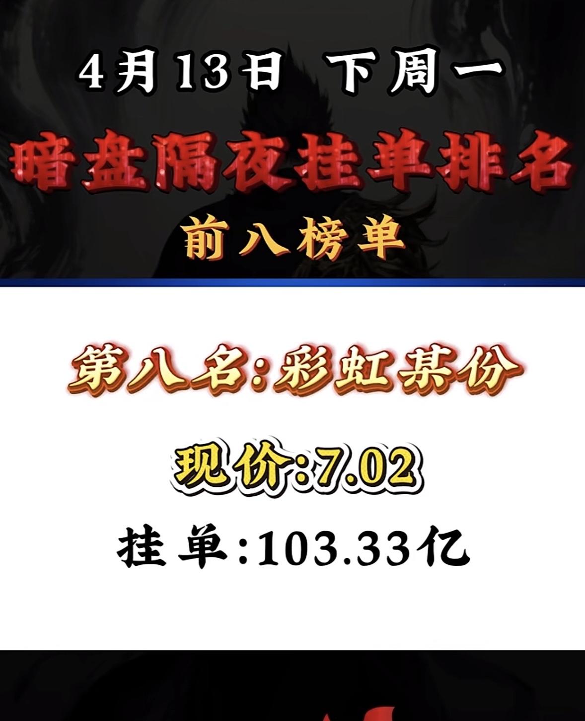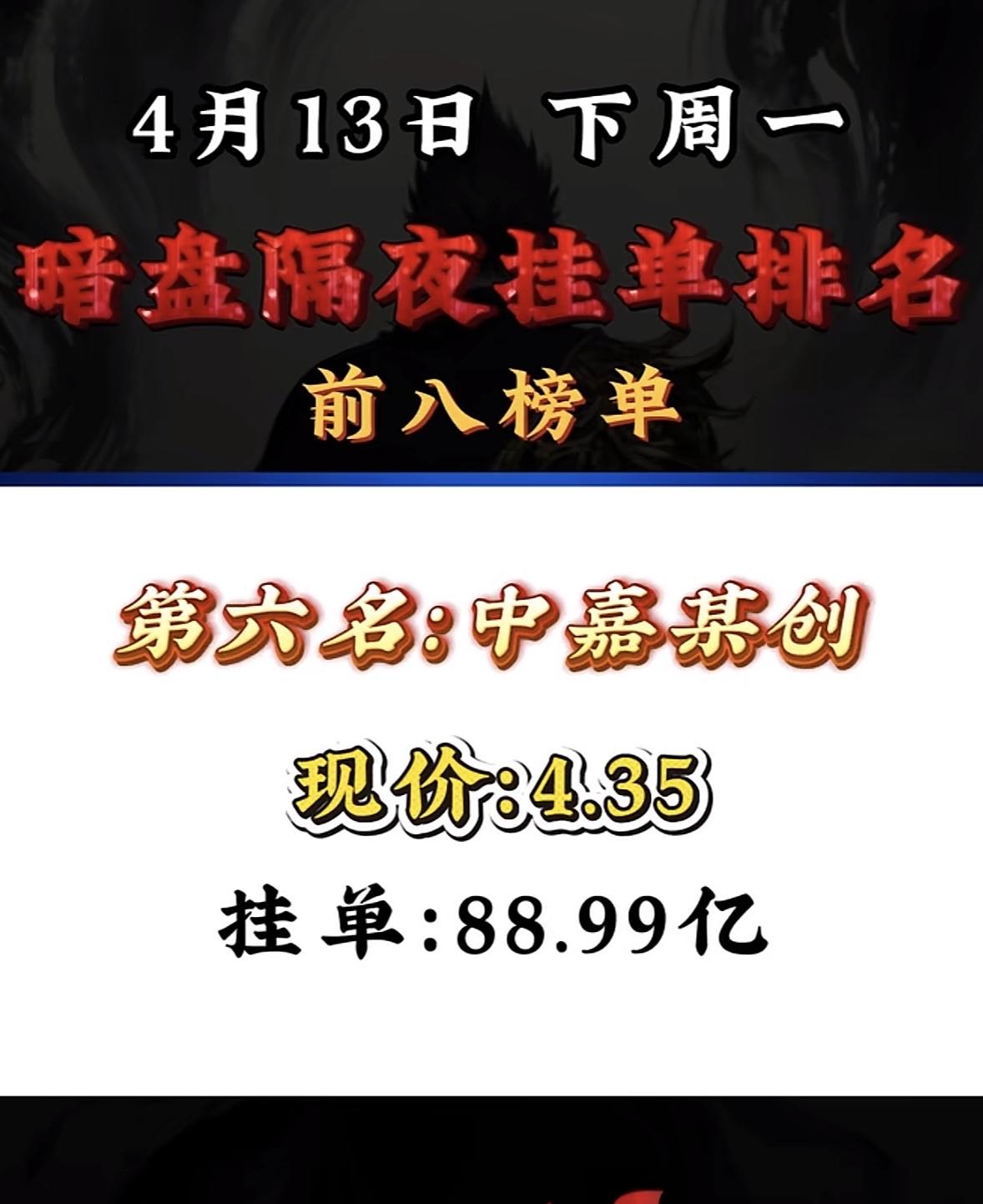4月13日周一暗盘隔夜挂单排行榜资金整理结果公布啦。 暗盘隔夜挂单排名揭晓,彩