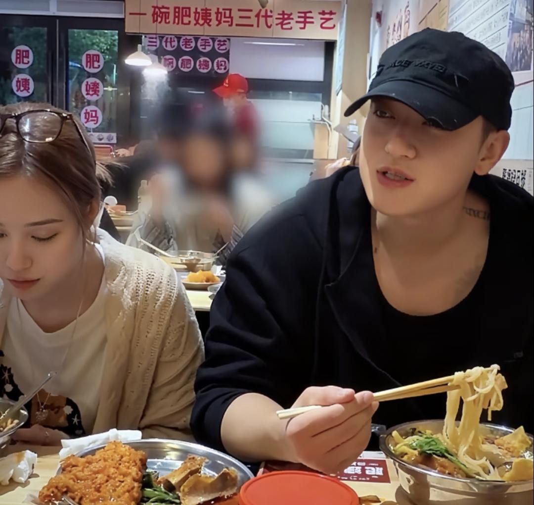 黄子韬和老婆徐艺洋现身杭州一家餐馆吃螺蛳粉,夫妻俩坐在一起,全程有说有笑,徐艺洋