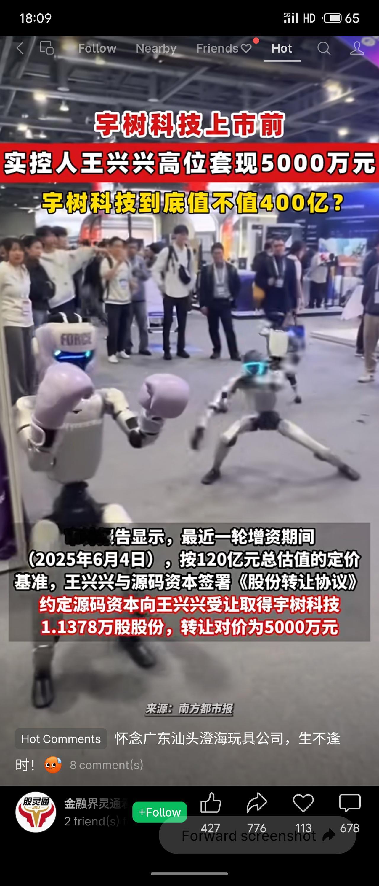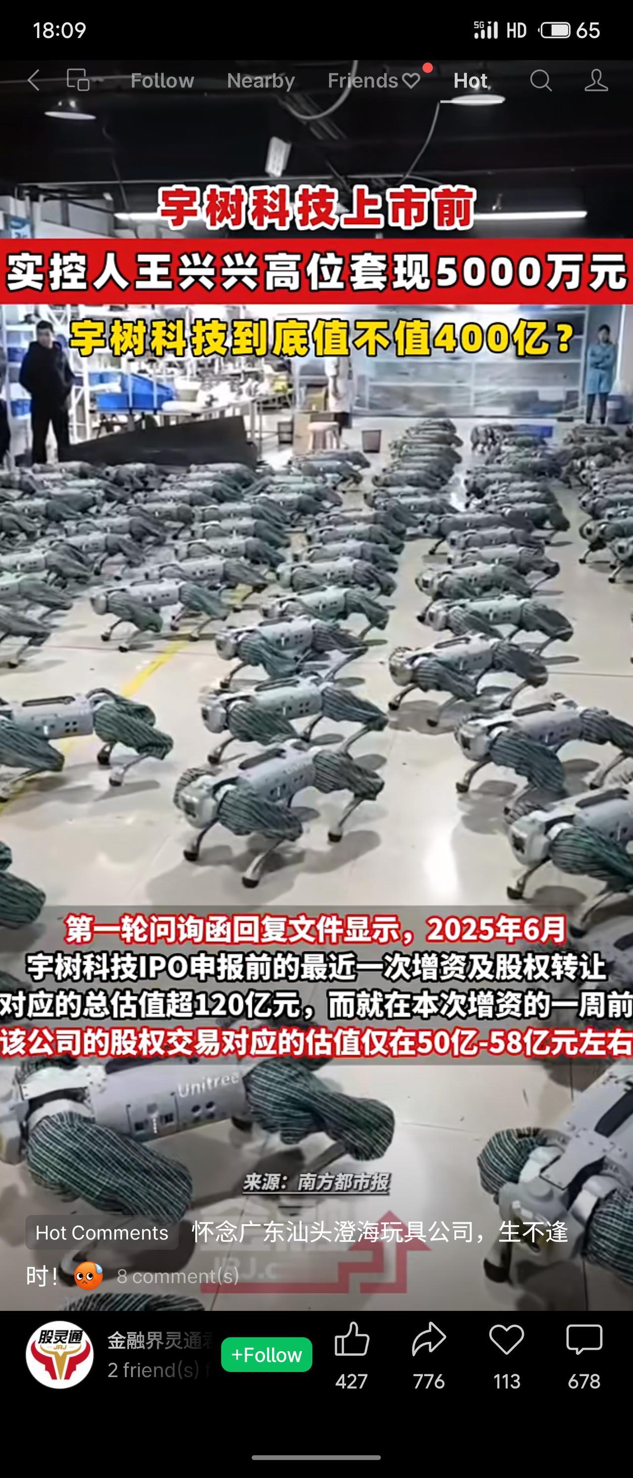 宇树科技在科创板IPO申报前,实控人王兴兴通过向源码资本转让股份套现5000万元。公司估值在短期内急剧攀升:一周内从约50亿元涨至120亿元,而按募资计划计算,隐含市值更达400亿元,引发“到底值不值”的质疑。与此同时,公司被列入证监会现场检查名单,财务真实性、内控规范性等将接受审查。这一系列操作暴露出上市前估值炒作与内部人套现的嫌疑,投资者需警惕高估值背后的风险,监管介入正当其时。