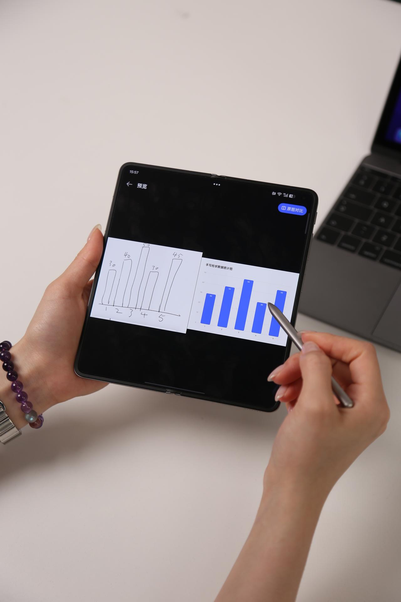 OPPO Find N6的作用就来了——它能直接把草稿转化成图表,只需要AI手写笔一圈一点就搞定了,看起来正儿八经的,直接拉高用户的信赖度了好吧!!