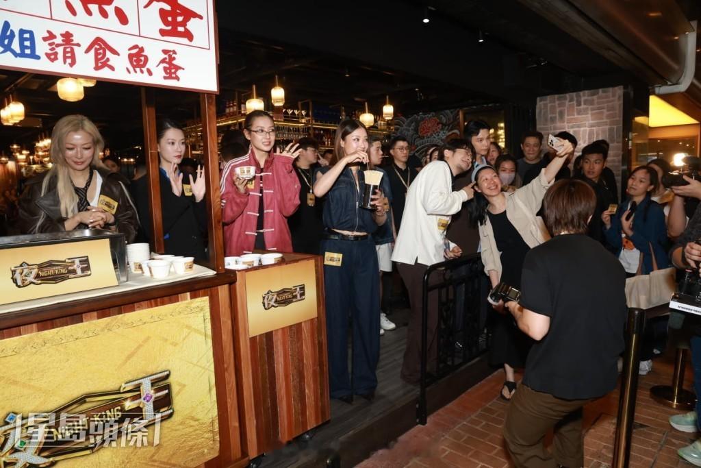 贺岁片《夜王》票房冲破一亿,演员黄子华、郑秀文(Sammi)、廖子妤(Fish)、卢镇业(小野)、何启华(Dee)、杨伟泳、谭旻萱(Mandy)、李芯駖及导演吴炜伦等,为答谢观众今晚(9日)齐集尖沙咀大派鱼蛋。现场同时公布,4月16日推出加插三十分钟从未曝光片段的导演版《夜王》。