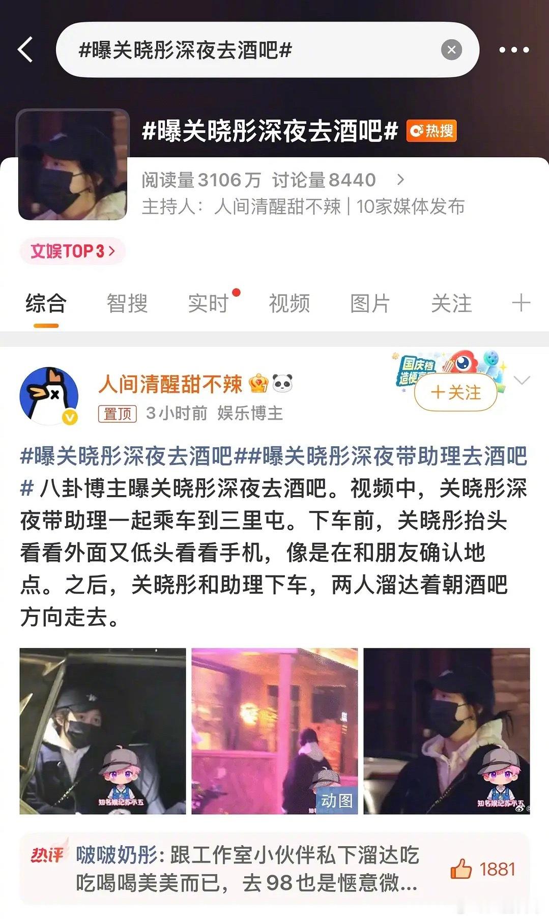 关晓彤回应喝酒热搜曝关晓彤深夜去酒吧