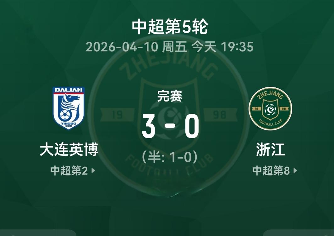 大连英博在中超第五轮3:0击败浙江队,继主场1:0战胜上海海港、客场2:1赢下山东泰山之后,迎来三连胜。值得一提的是,球队开局两连败后迅速调整,连续力克三支强队,展现了不错的韧性和不俗的战绩。