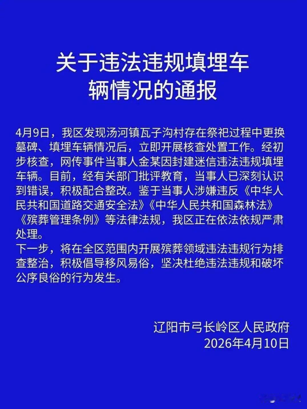4月10日,辽阳市民政局与弓长岭区民政局联合对外证实:网传“奔驰车陪葬”事件属实,事发地点位于一处较为偏僻的山林区域,涉事车辆为市场售价约百万元的黑色S450L奔驰,并非网络摆拍或恶意炒作。随着事件发酵,更多车主信息通过知情人士的爆料浮出水面。据悉,逝者是辽阳本地一位年逾七旬的企业家,生平对奔驰汽车犹为喜爱,在其将要去世时曾向子女表达“想带着喜欢的车走”的最后遗愿。子女为完成父亲遗愿,践行传统孝道,遂出资购置了这辆全新的奔驰轿车作为陪葬品。目前,当地已迅速成立由民政部门牵头,公安、自然资源、生态环境、交通运输等多部门参与的联合调查组,对事件展开全面深入调查。