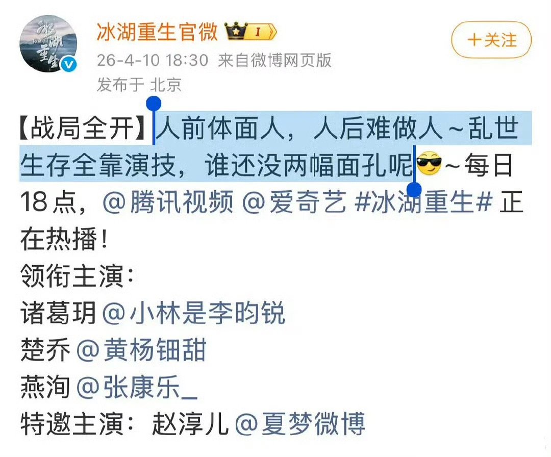 赵丽颖工作室吃完冰血馒头后,又被冰湖重生剧组狠狠内涵了一把,应该是觉得不妥又删了