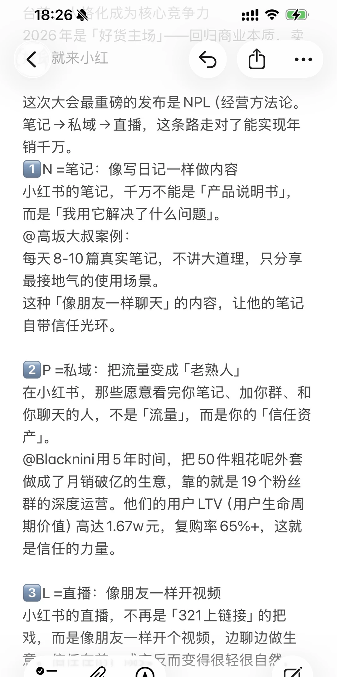 这次大会最重磅的发布是NPL(经营方法论。笔记→私域→直播,这条路走对了能实现年销千万。