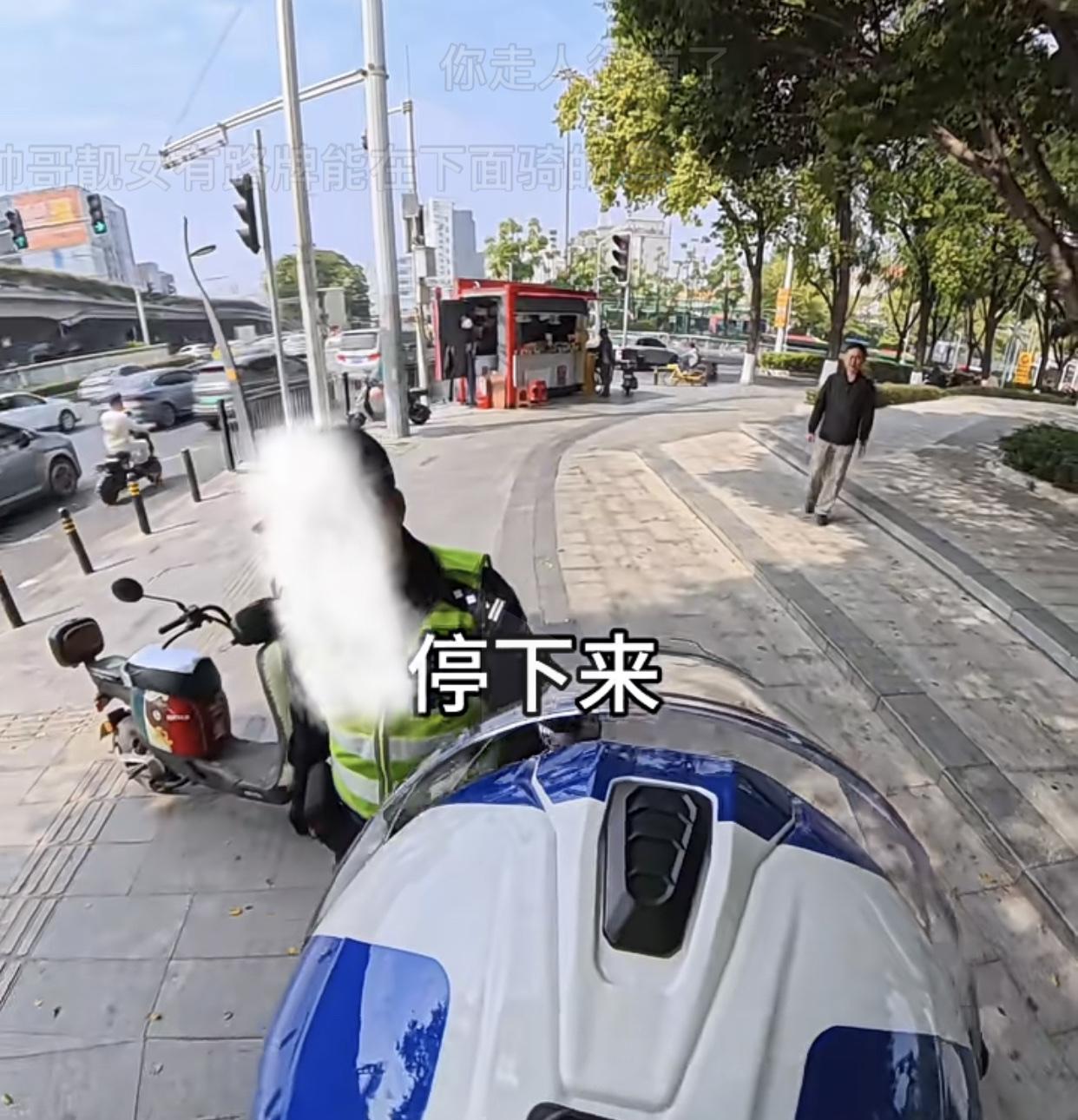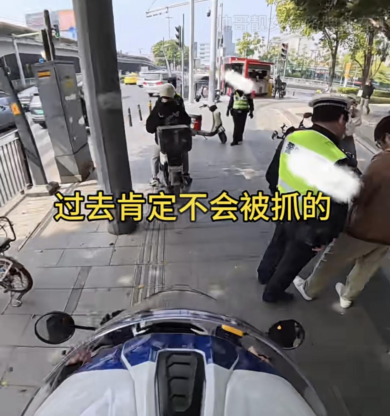 这名骑手以为车子上了牌又戴了头盔,叔叔不会理,到头还是没逃过叔叔的金星火眼。