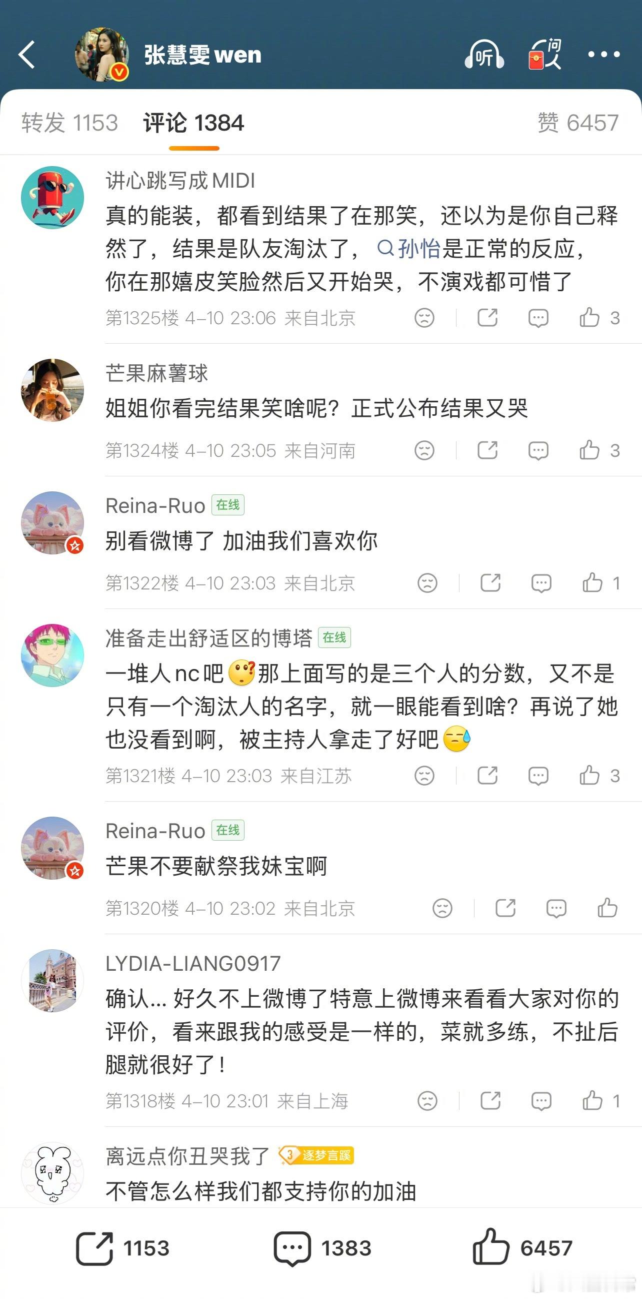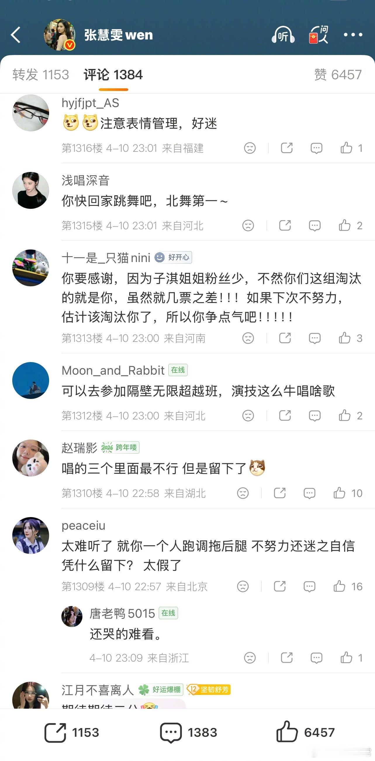 张慧雯评论区好多人说她应该被淘汰赵子琪淘汰