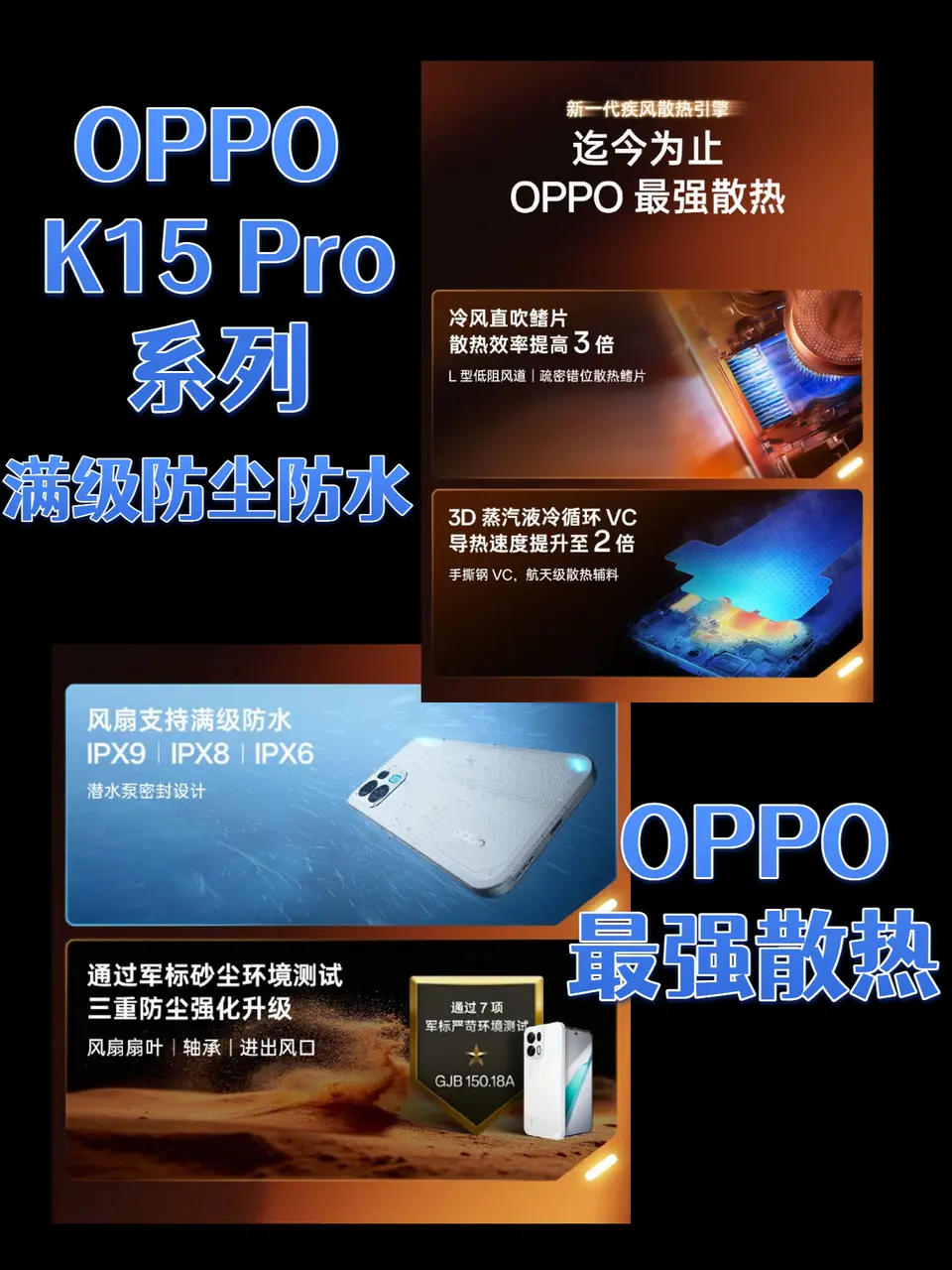 同样权威的还有OPPO K15 Pro系列,满级防尘防水+OPPO最强散热,堪称高攻高防的典型代表,就是用水直接冲都毫发无损.....