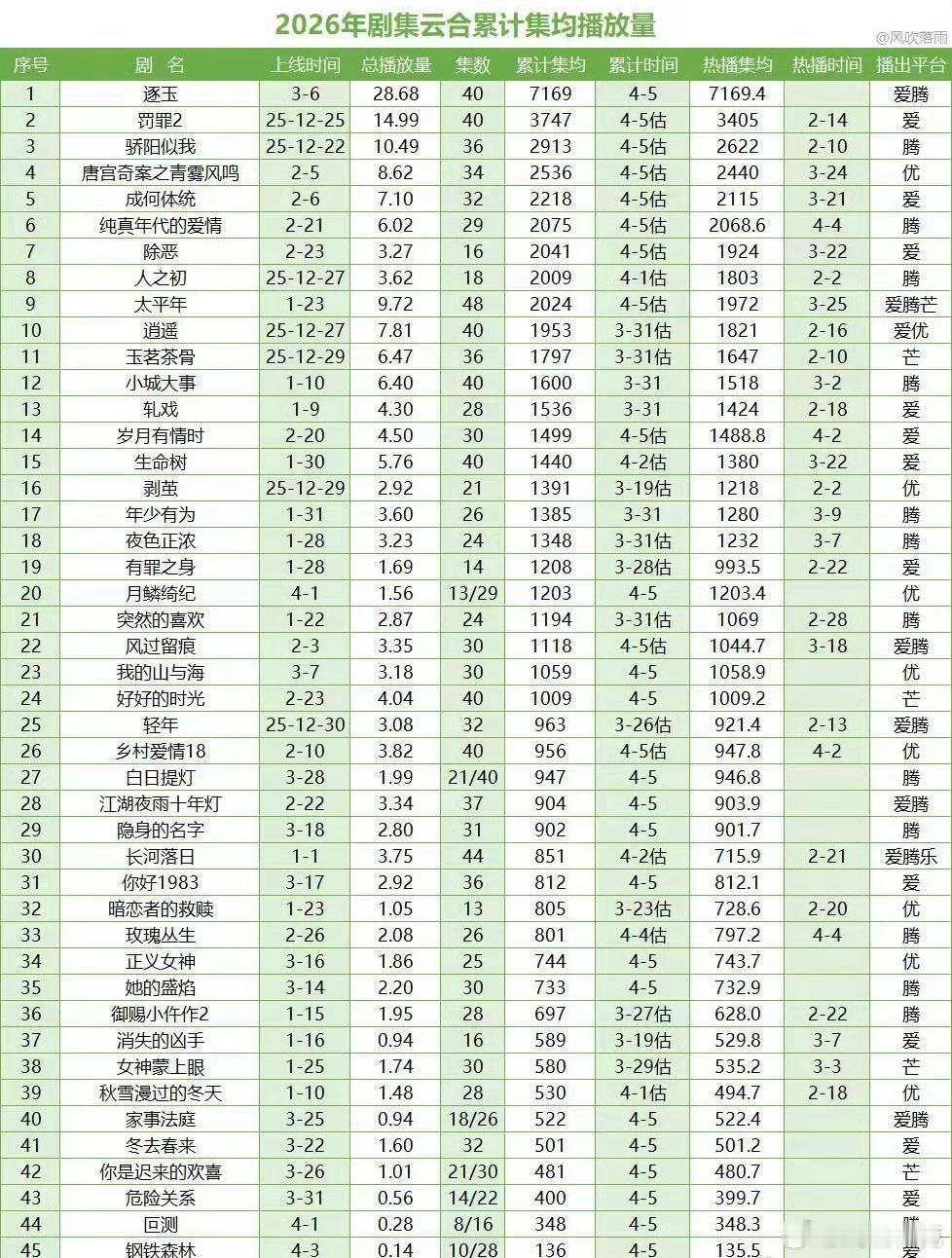 逐玉热度方面有🥝破万18天🐧破万12天,收视方面目前cvb全卫视暂年冠,数据上云合市占率最高到了55.1%,冲到云合历史TOP2,播放量云合、酷云、猫眼三方观测平台全部上7000万,国内断层第一、海外全面登顶,作为第一部登上网飞周榜的国产剧创造历史并且连登四周,全员全平台涨粉两千多万,做到了全方位无短板
