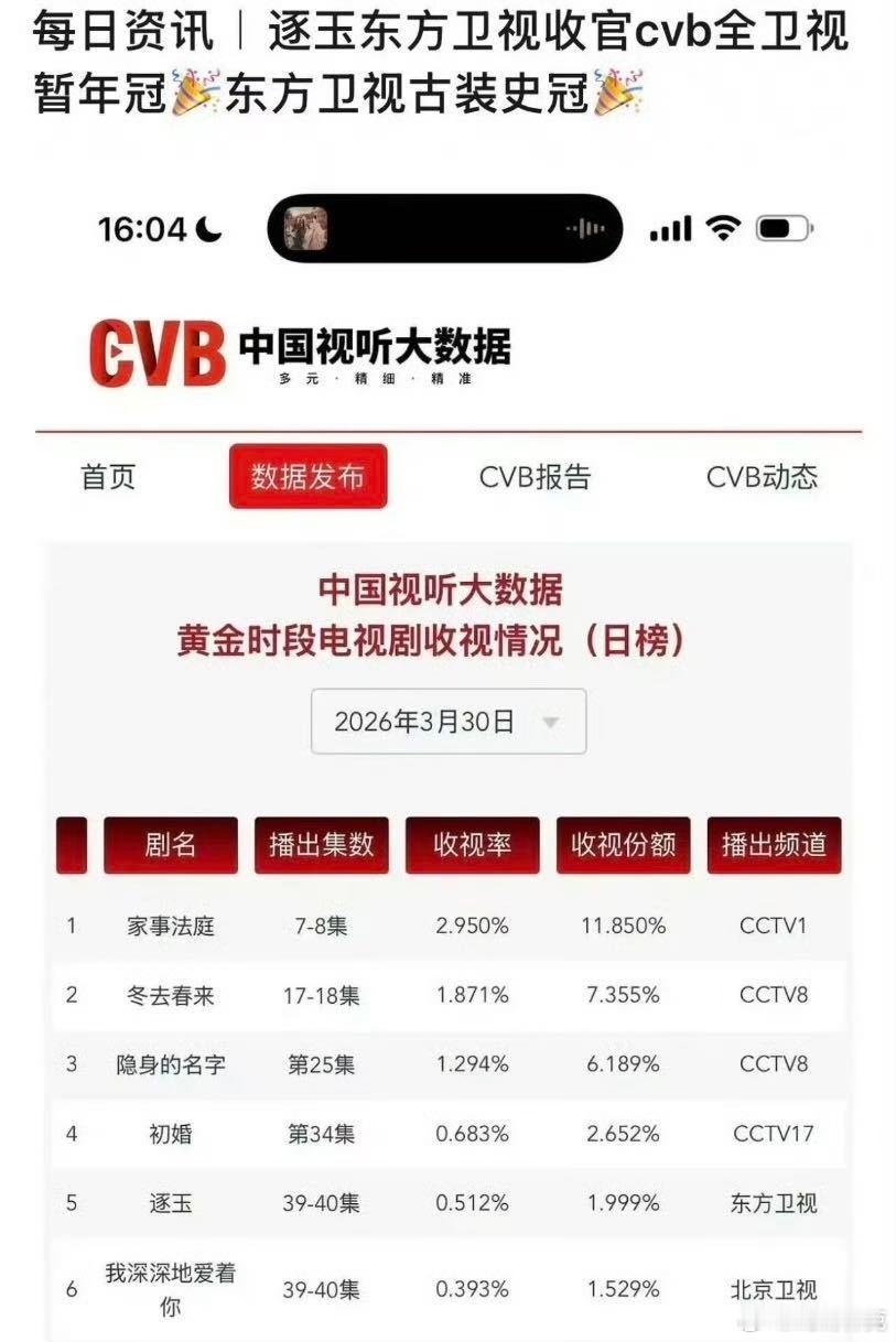 逐玉热度方面有🥝破万18天🐧破万12天,收视方面目前cvb全卫视暂年冠,数据
