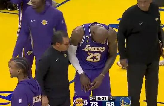 落地后的詹姆斯,下意识地捂着右手,表情十分痛苦,随后缓缓走下场。