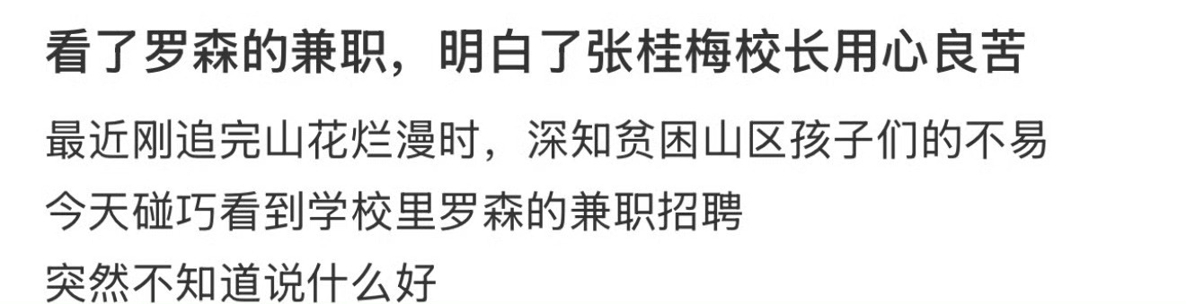 看了罗森的兼职,明白了张桂梅老师的良苦用心
