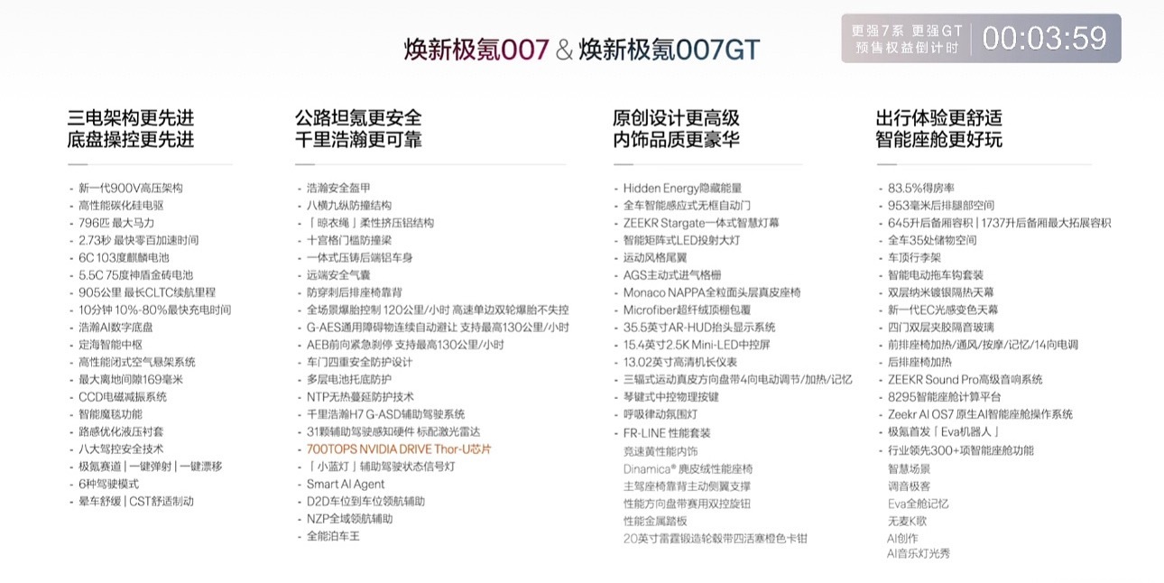 极焕新极氪007/007GT双车同价75度后驱Max版:权益后限时售价19.39万元起103度后驱Max版:权益后限时售价21.39万元起103度四驱Ultra版:权益后限时售价23.39万元起19万起就能拿下900V+激光雷达,emmmmm,这是没给友商留活路啊朋友们,你们觉得这个价格怎么样极氪更强7系更强gt一秒看透极氪安全黑科技