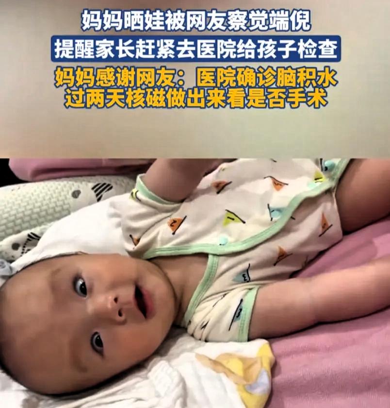 第二天一早,她就带着宝宝去医院做系统检查,最终确诊为脑积水,积水已经对脑部组织和神经造成压迫,后续还要等待核磁结果,再确定是否需要手术治疗。宝妈心里又心疼又踏实,心疼孩子受罪,也庆幸愿意听从善意提醒,没耽误诊疗时机。