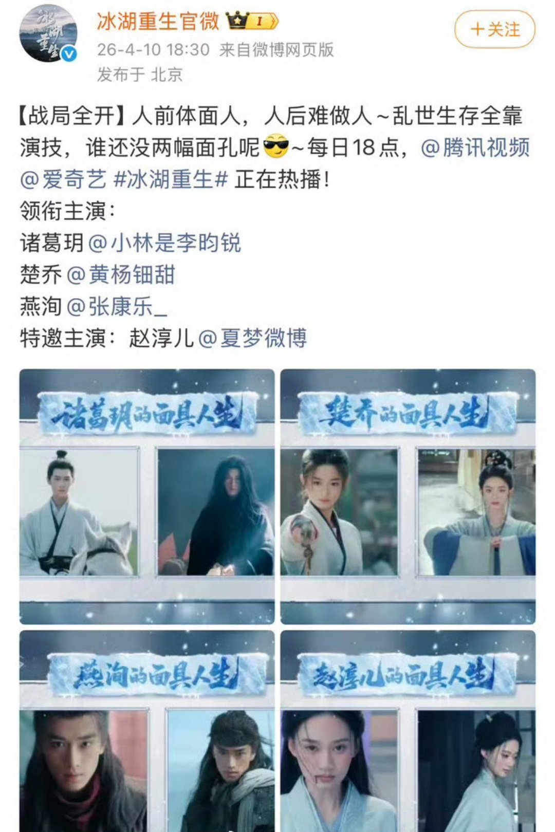 这还正面刚起来了赵丽颖工作室发楚乔传采访,疑似冰湖重生官微回应:人前体面人,人后难做人;乱世生存全靠演技,谁还没两幅面孔呢