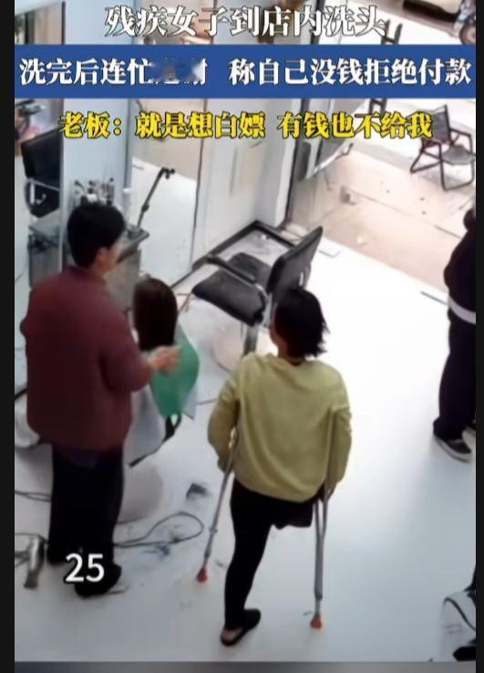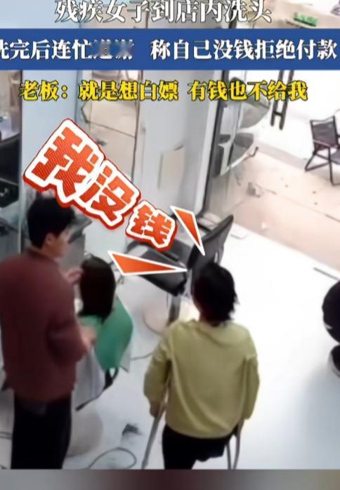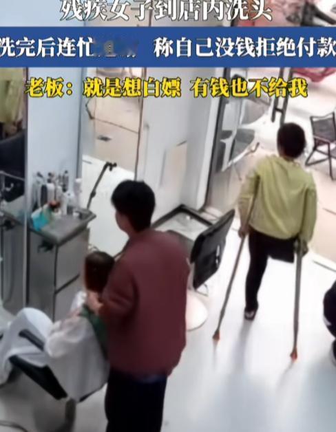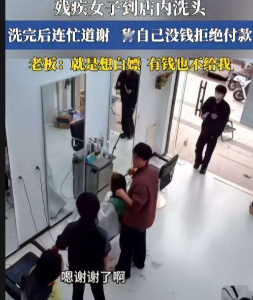 湖北,一残疾女子到店洗头,洗完后连忙道谢,称自己没钱拒绝付款。这行为,正如老板所说,“就是想白嫖,有钱也不给我。”