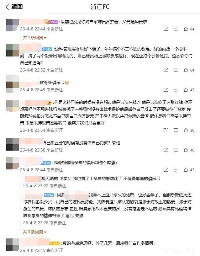 说什么“软蛋、冷血”,我看是心疼自家宝贝“大腿”被罚,影响了冲刺联赛吧。
