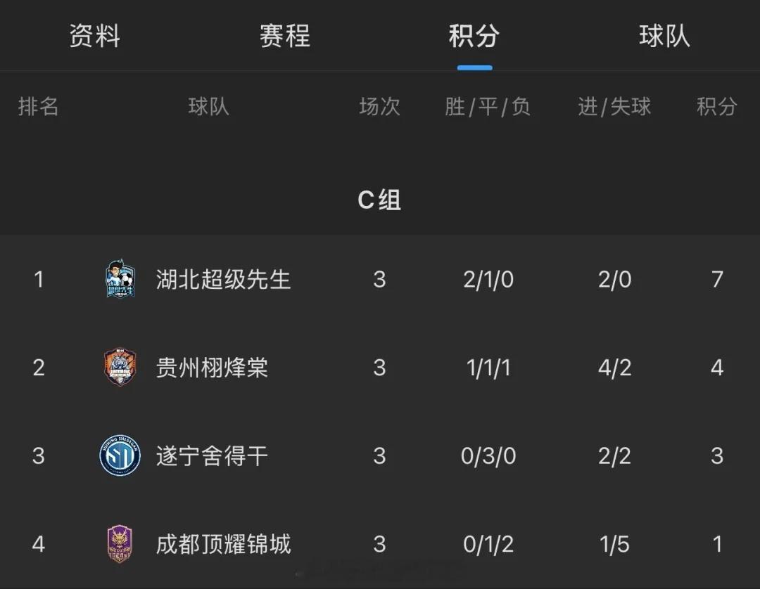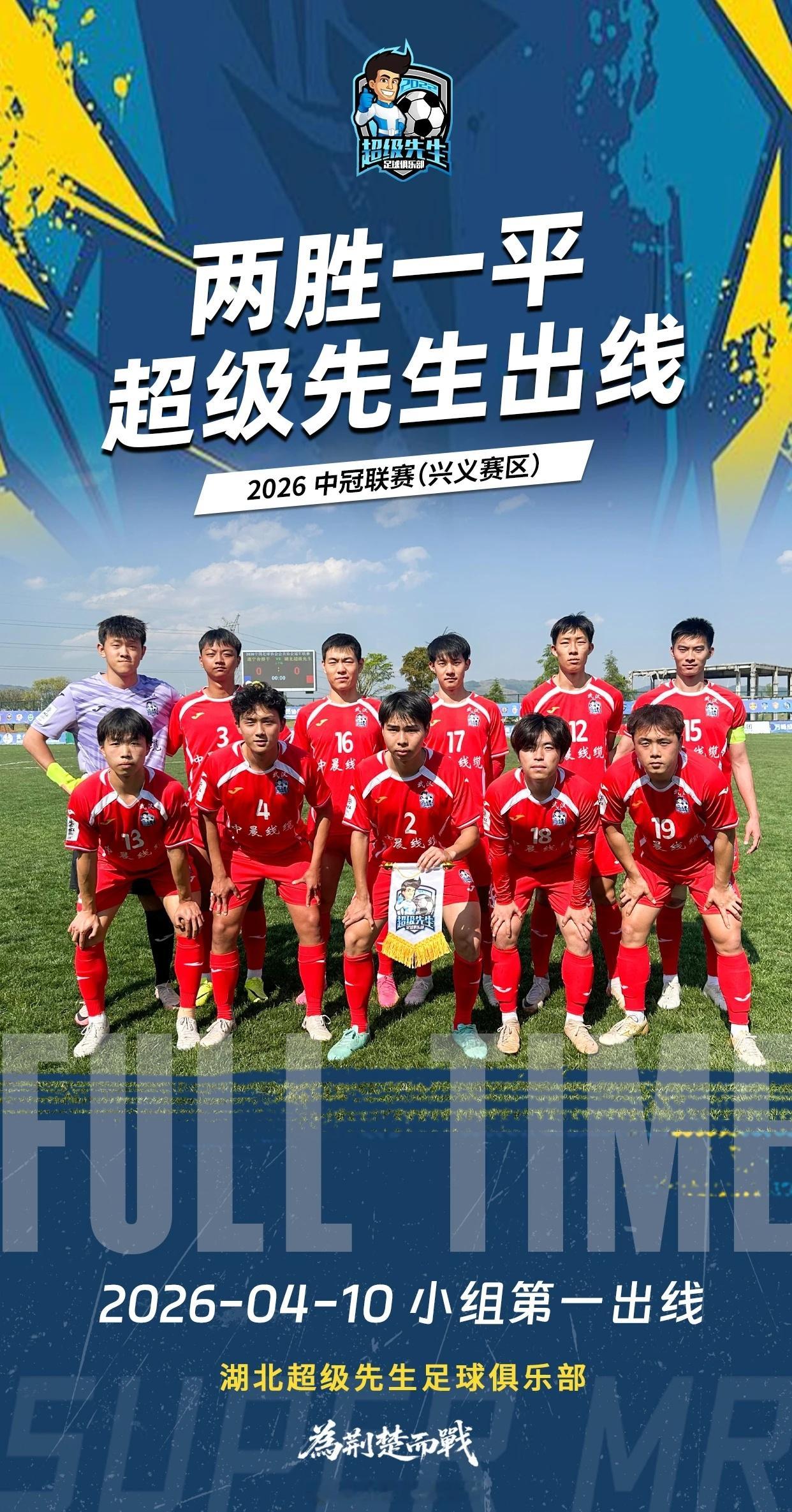 湖北超级先生0-0战平遂宁舍得干,小组赛取得两胜一平的成绩,以小组第一成功出线,晋级交叉赛!