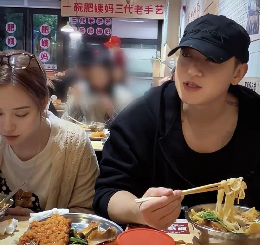 黄子韬和老婆徐艺洋现身杭州一家餐馆吃螺蛳粉,夫妻俩坐在一起,全程有说有笑,徐艺洋