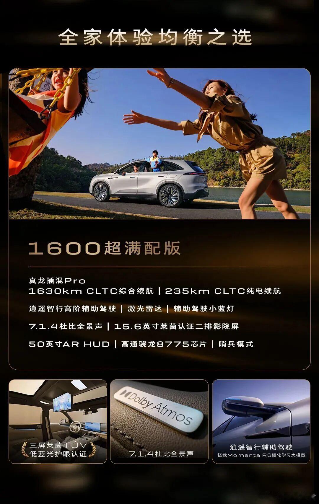 内饰搭载8.8英寸仪表屏+15.6英寸中控屏以及50英寸AR HUD。