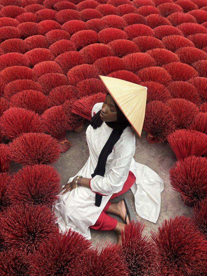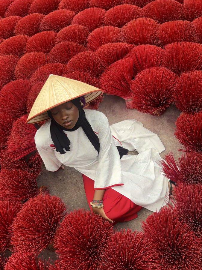 我一开始怀疑是光线的问题,后来又觉得是黑色礼服衬得肤色更亮,直到看清镜头才彻