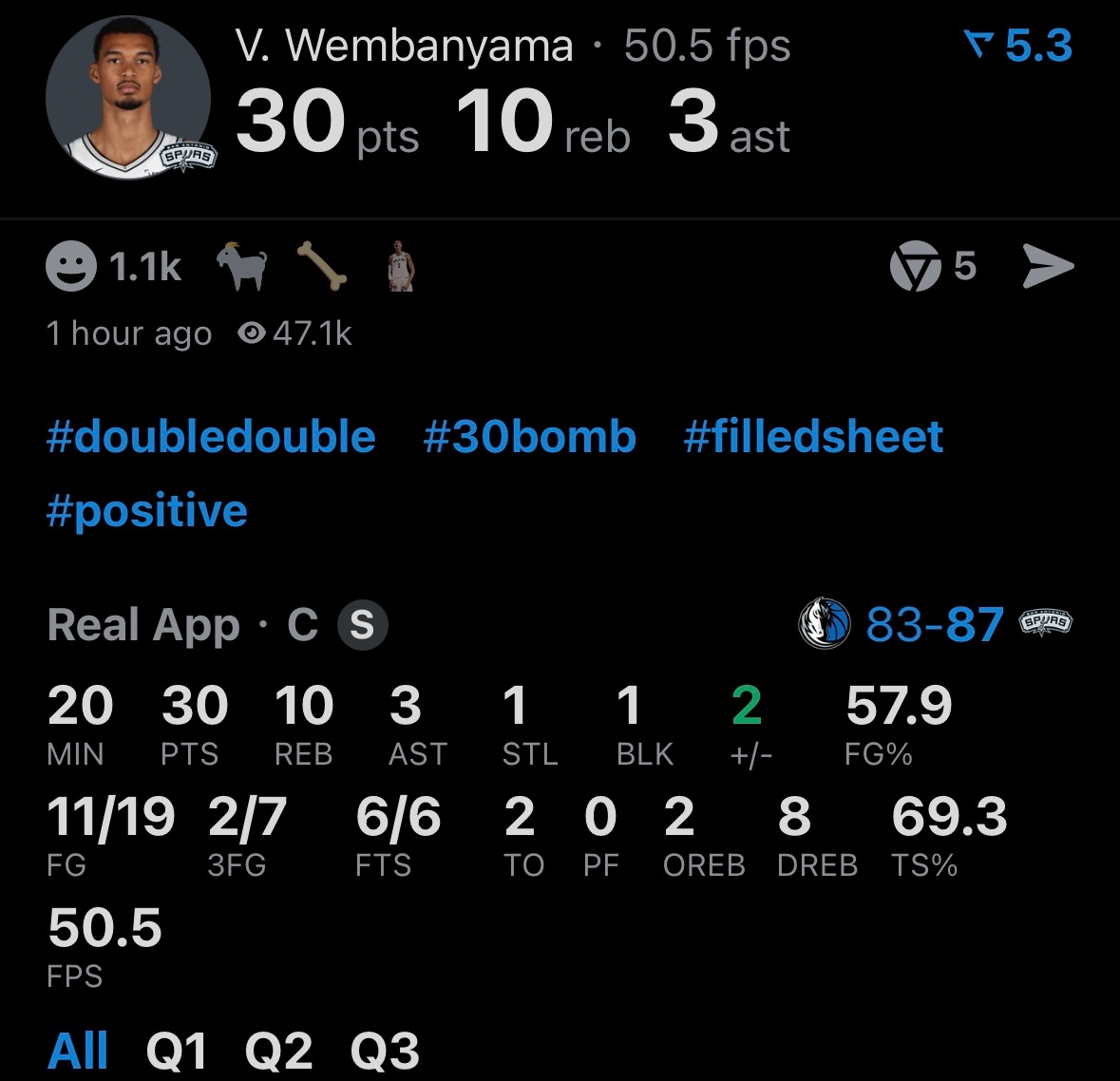 这绝对是冷知识!文班亚马已经得到个人生涯第7次40+,马刺生涯40+场次竟然全部