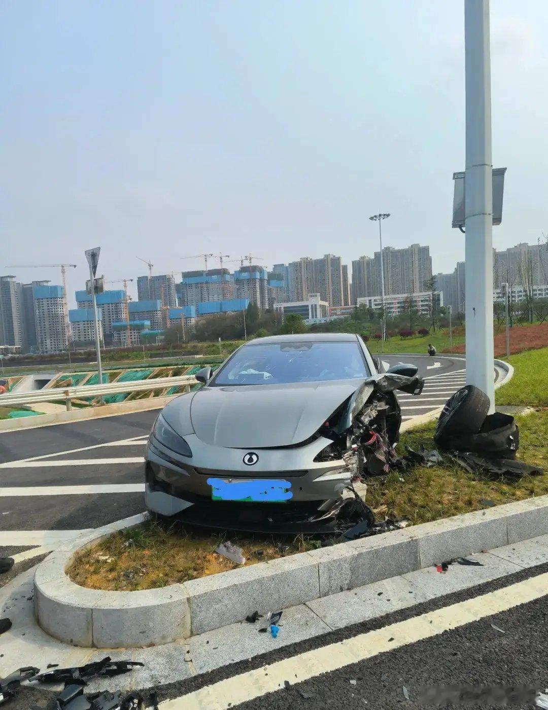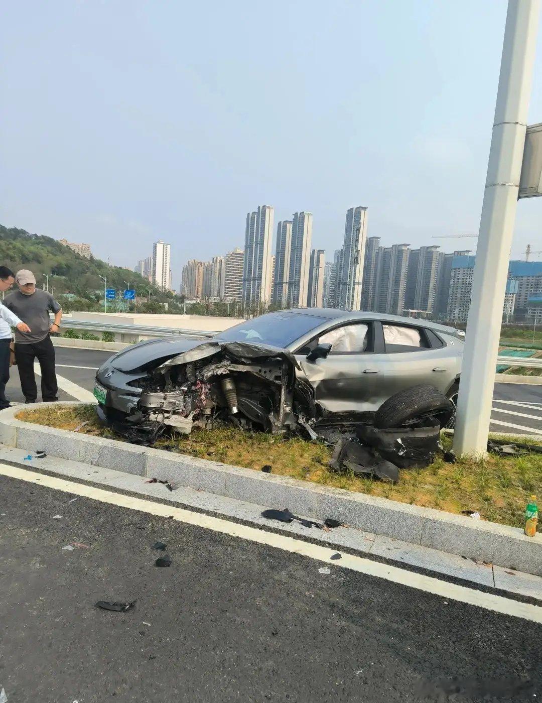 腾势icon Z9这事故,好好的车可惜了。气囊全弹出来了,前悬看着够粗壮,轮胎都