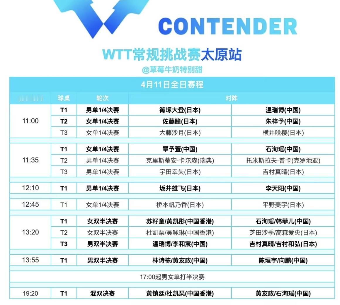 太原常规挑战赛4月11日午场赛果,恭喜温瑞博,石洵瑶挺进四强!