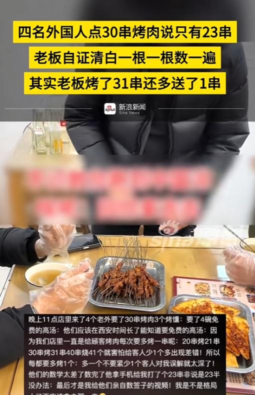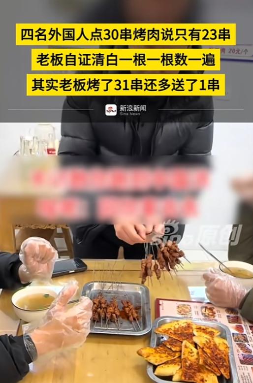 “滚回自己的国家!” 陕西西安,4名印度留学生去吃饭,当老板将烤肉端上桌时,他们称少了7串,老板让他们重新数,这才发现他们竟然是跳着数的。老板做餐饮多年,一向实在,怕客人觉得数量不对,每单都会习惯性多烤一串送给顾客,这次也不例外,端上桌的实际是31串,比点单的30串还要多一串。面对留学生的质疑,老板没有争执,也没有不耐烦,只是平静地让他们当着自己的面再数一遍,想把问题弄清楚。