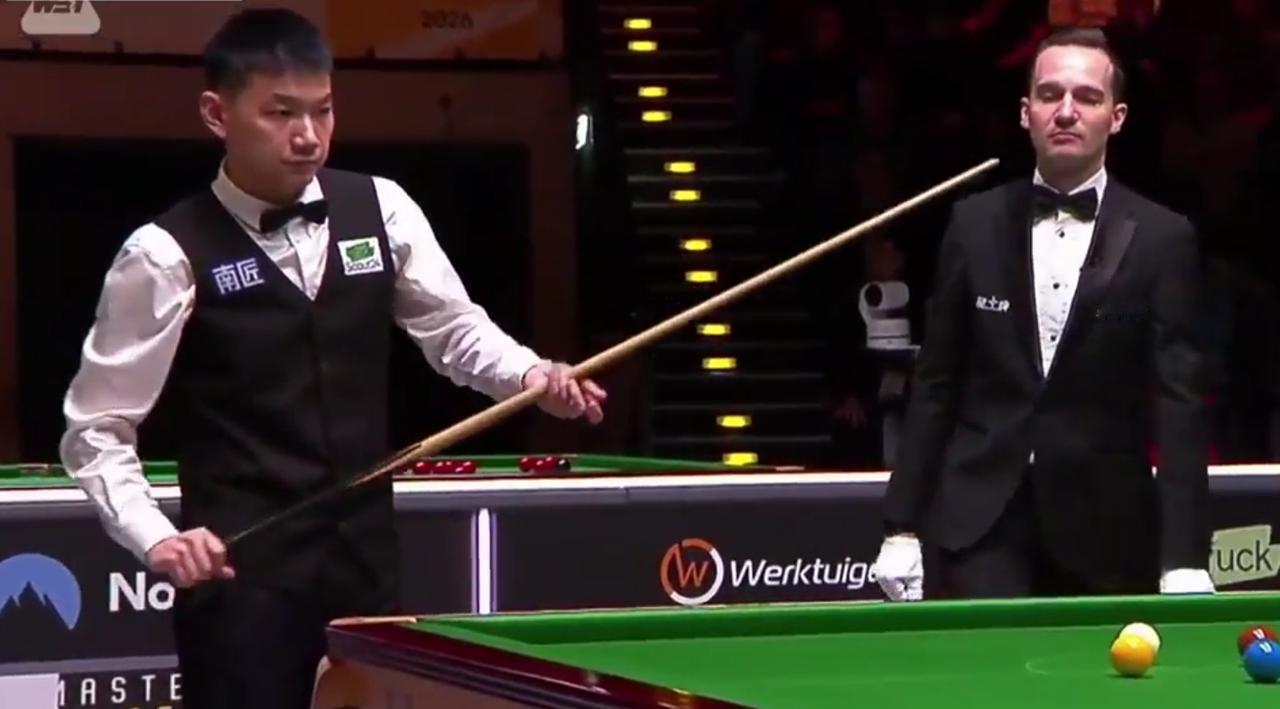 第四局,龙泽煌同样在1:20落后的情况下,打出单杆85分,86:20拿下此局,局分3-1领先。进入中间休息。