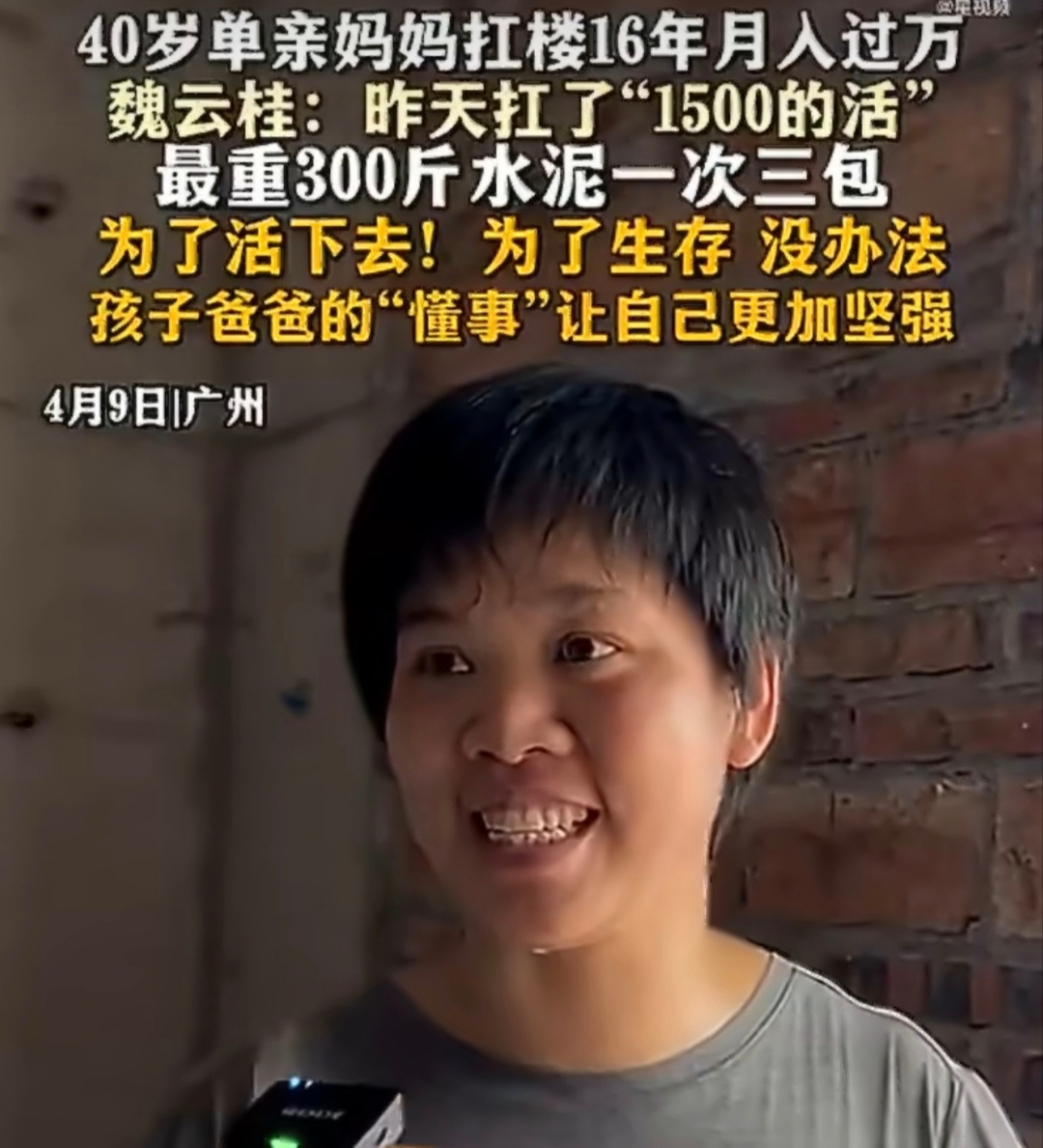 单亲妈妈回应工地扛楼月入过万单亲妈妈工地扛楼月入过万引发关注,她靠体力撑起家庭,令人敬佩。这份收入背后是常人难以想象的辛苦,烈日与负重下的坚持,远比空谈努力更动人。她不抱怨、不示弱,用汗水换安稳生活,展现了普通母亲的坚韧与担当。社会不必过度渲染苦难,更应看见底层劳动者的不易,尊重每一份靠双手谋生的职业,也为努力生活的人多一份理解与善意。