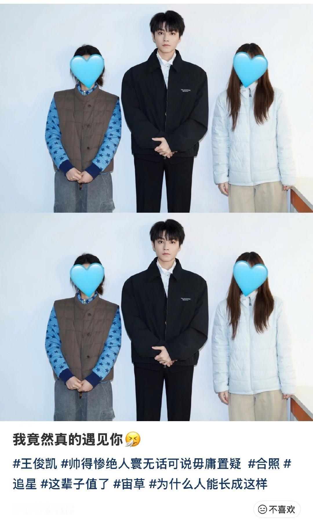 竟然遇见王俊凯并和他合照了55555有博主发出了王俊凯去浪姐送考时候的照片,还和