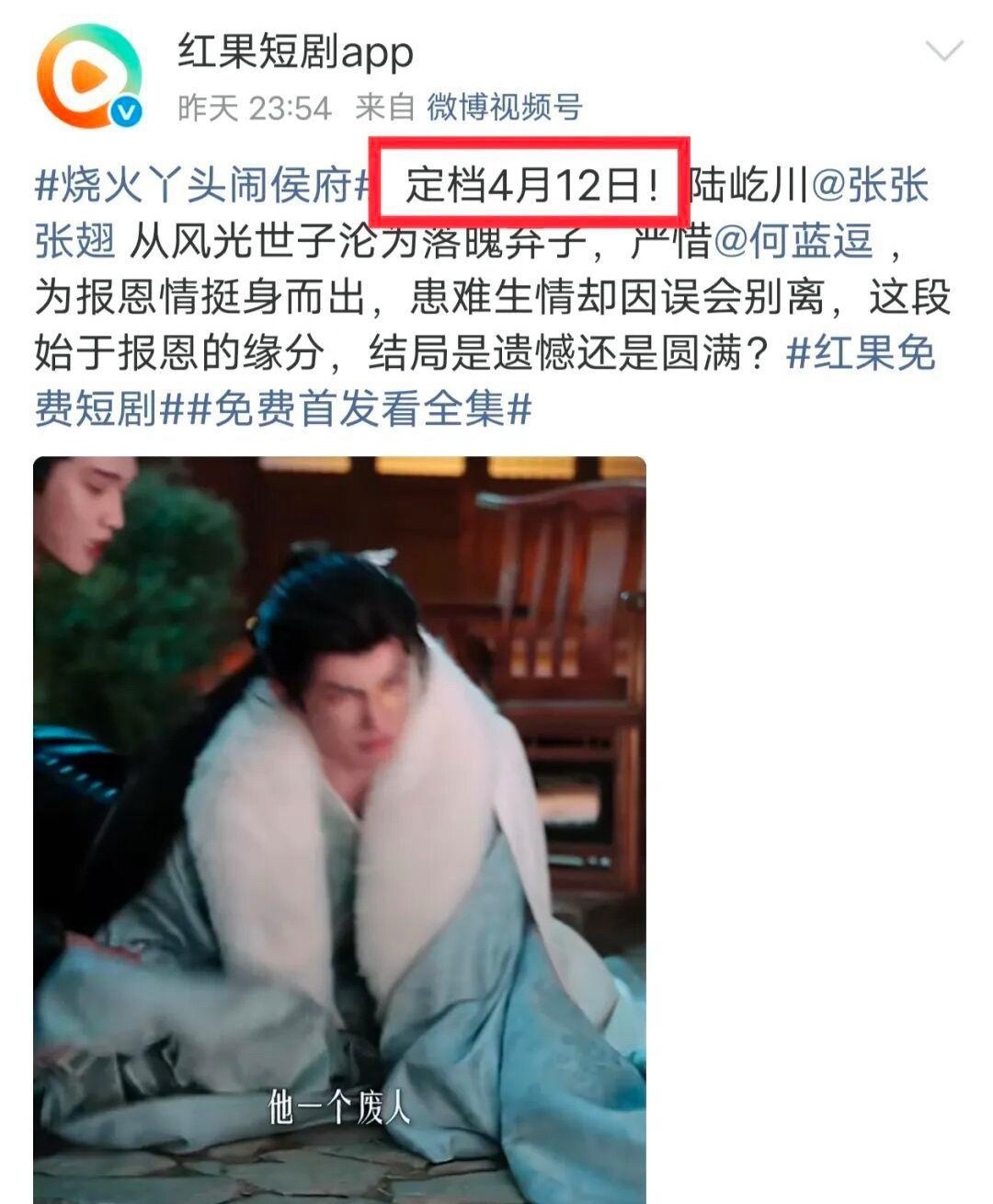 改期啦!张翅新剧《烧火丫头闹侯府》推迟上线,粉丝们千万别跑空了!