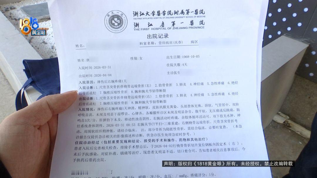 不能欺负底层劳动者!浙江杭州,一位 57岁的农村大姐在餐馆后厨摔断了手腕,疼得当