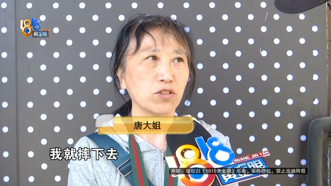 出于本能,她用右手死死撑了一下地,结果一阵钻心的剧痛袭来,大姐疼得坐在地上眼泪直流。