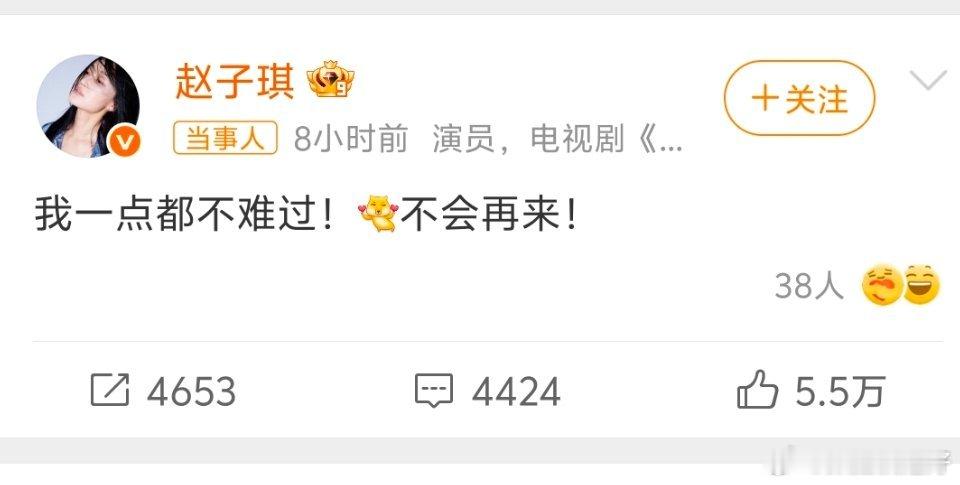 赵子琪凌晨放话:“不难过!不会再来!”4月11日凌晨,赵子琪一条微博直接炸了