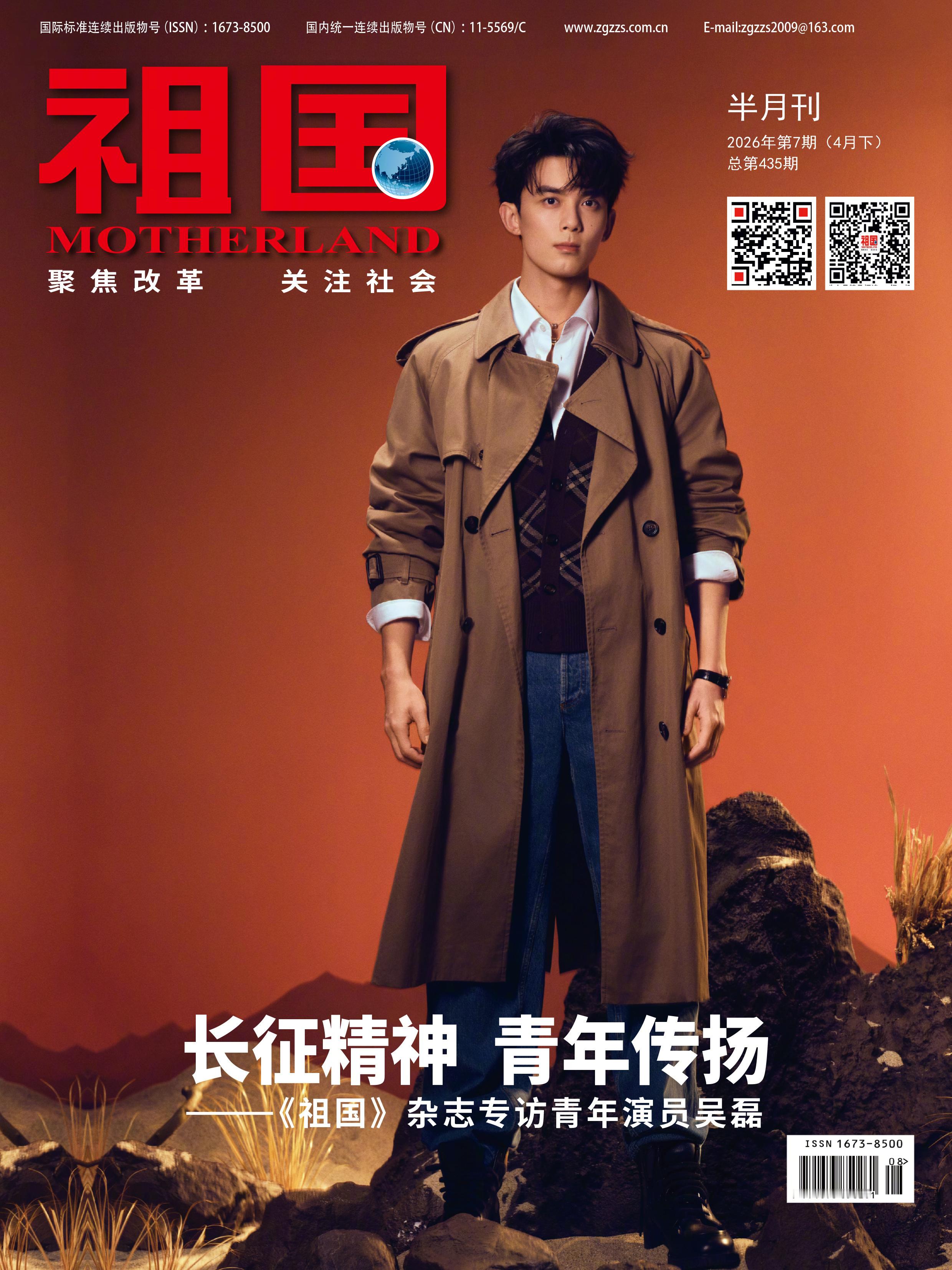 吴磊 国家级时政期刊《祖国》杂志创刊18年来首位艺人封面人物,身着Burberry服饰,戴着BVLGARI珠宝,借青年演员代表的亮相 ,以当代青年视角回望历史 、铭记征程 ,真正的根正苗红莫过于此。祖国杂志封面人物吴磊